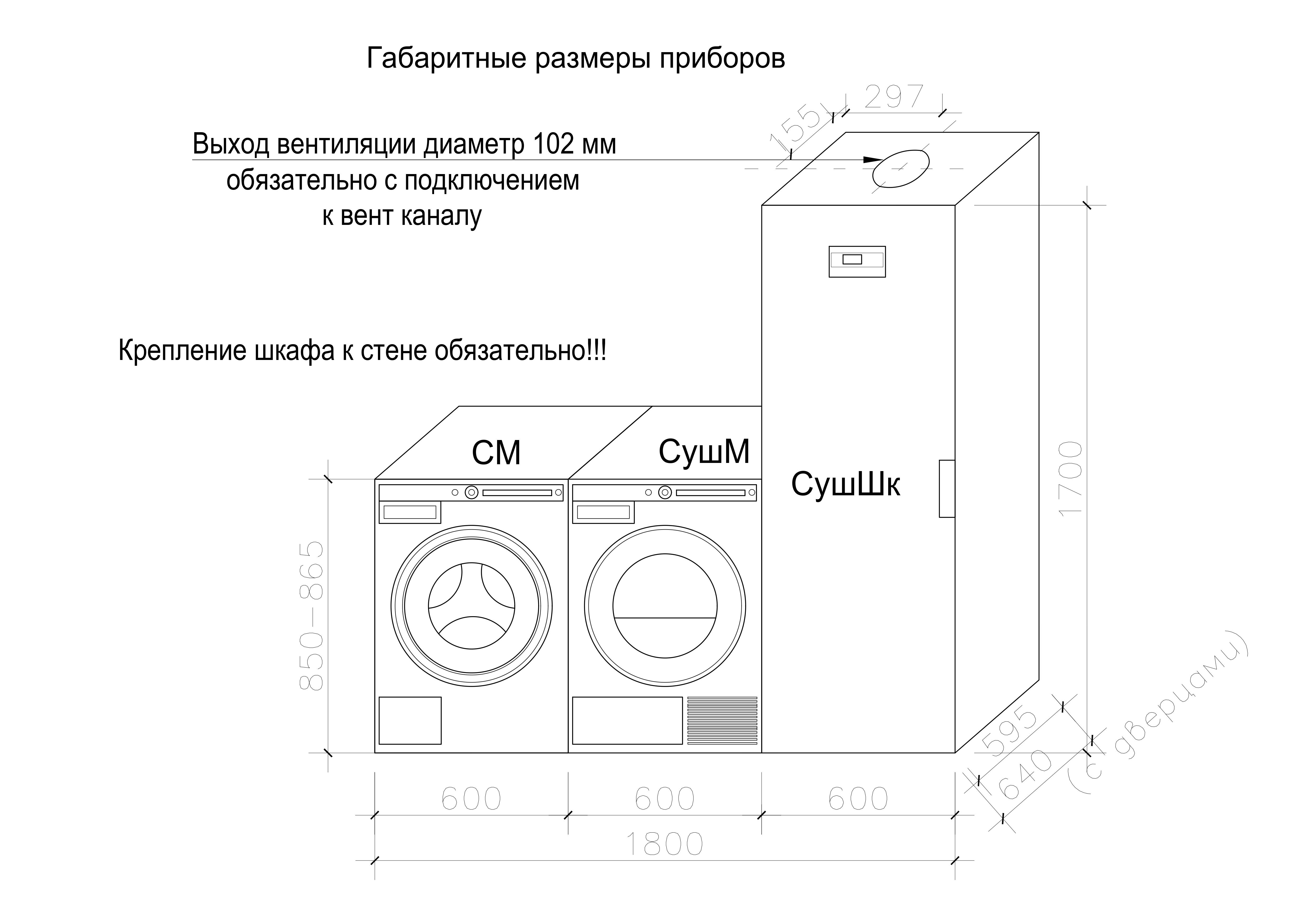 Этот комплект включает в себя - стиральную машину * сушильную машину * сушильный шкаф - установленные не в колонну, а в линейную конструкцию шириной 180 см.