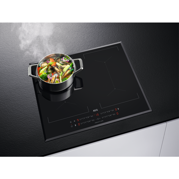 Индукционная варочная панель Aeg IKE64450FB в отделке из черного стекла, с рамкой фацет