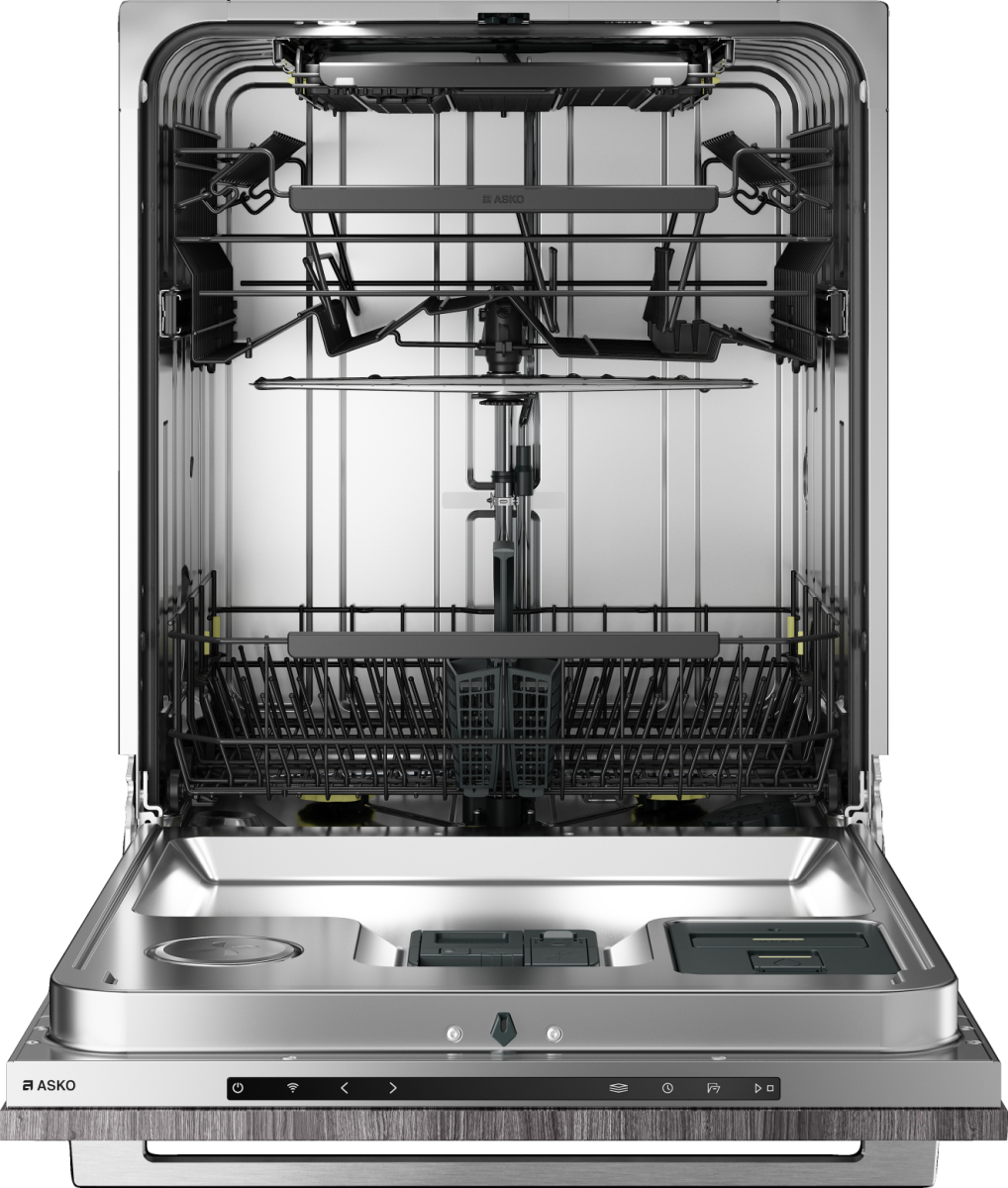 Встраиваемая посудомоечная машина Asko DFI545V шириной 60 см, с функцией автоматического открытия двери в конце программы, со встроенным модулем Wi-Fi и системой автодозирования