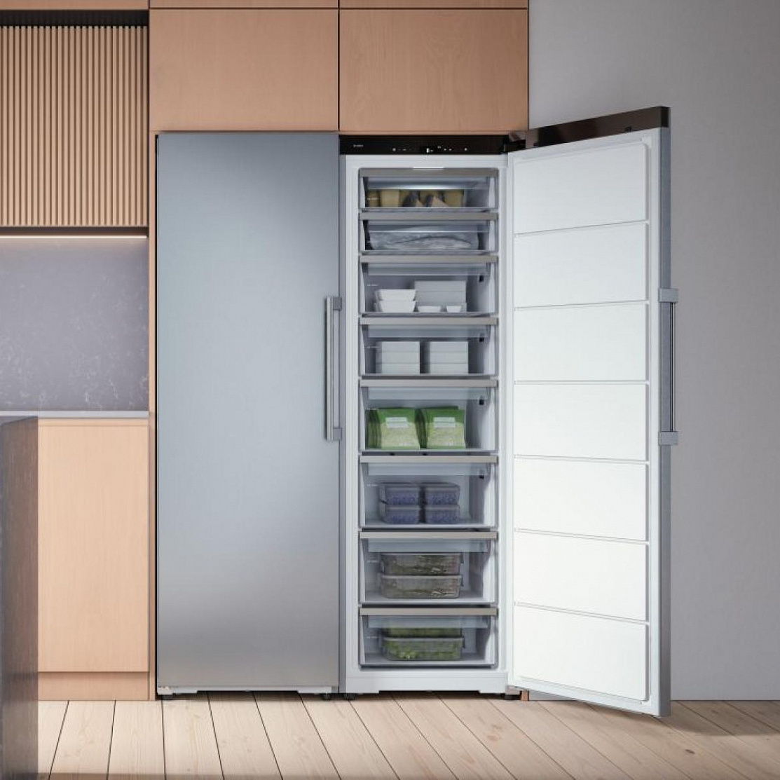 Возможность установки Side-by-Side позволяет объединить холодильник и морозильник в единую широкую станцию хранения — удобно при большой семье, активной кулинарии или частых закупках впрок. При этом сохранение точных зазоров и фронтального выравнивания поддерживает цельный внешний вид, а оптимальная интеграция облегчает планирование модулей кухни: вы получаете максимум вместимости и функциональности без компромиссов по дизайну.
