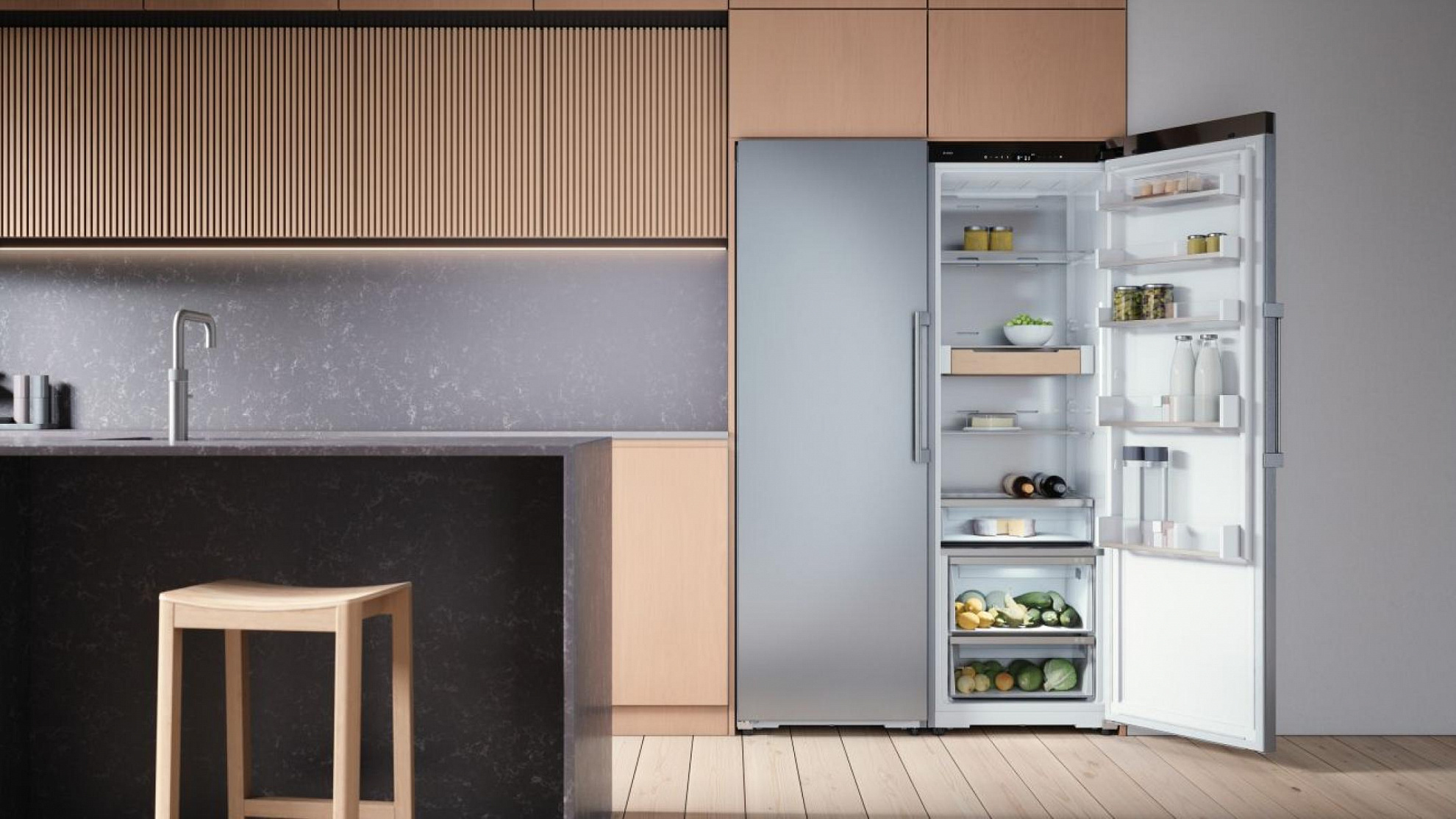 Отдельностоящие холодильники Asko спроектированы так, чтобы выглядеть как встроенные: фасады идут заподлицо со шкафами, а боковые стенки тоньше обычного. Это дает два ключевых эффекта: кухня визуально становится чище и дороже, а полезный объем внутри растет без увеличения внешних габаритов. Минимальные зазоры — всего 3 мм по сторонам — обеспечивают аккуратные, ровные линии без “щелей”, что особенно ценят в современных минималистичных интерьерах.