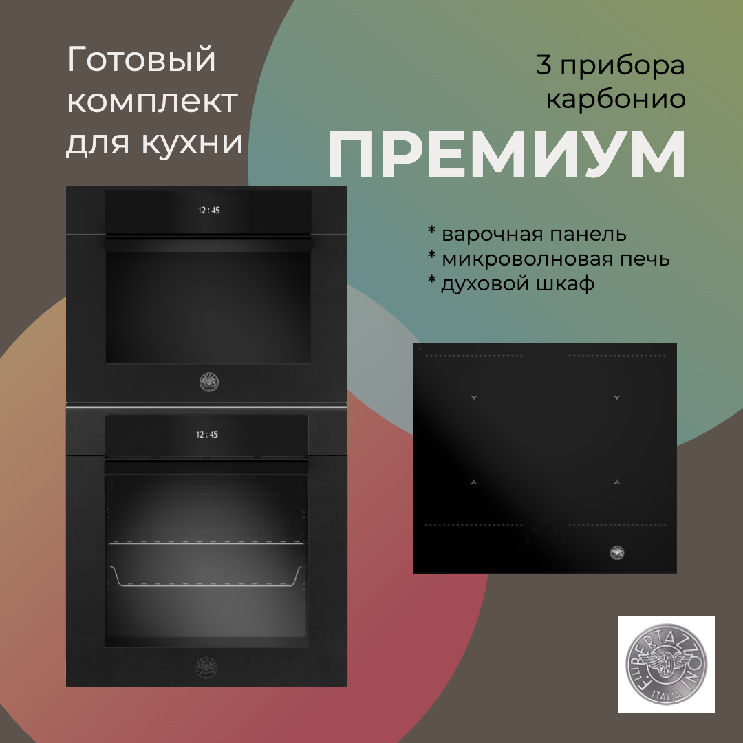 Готовый комплект техники Bertazzoni для кухни из 3 приборов, вариант "премиум" в отделке "карбонио"