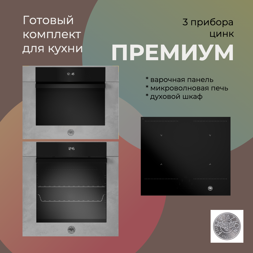 Готовый комплект техники Bertazzoni для кухни из 3 приборов, вариант "премиум" в отделке "цинк"