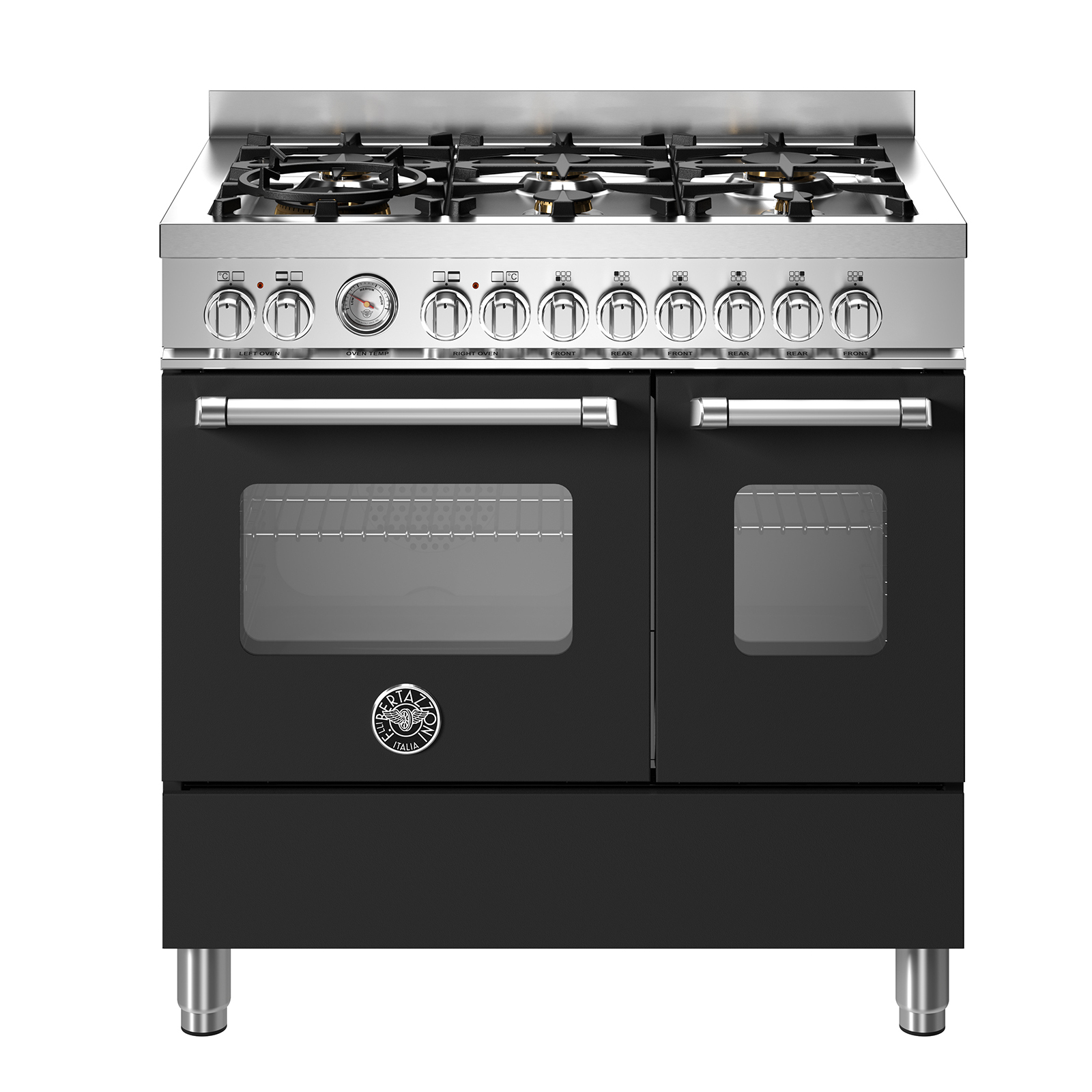 Газовый варочный центр Bertazzoni MAS96L2ENET из линейки Master с 2мя электрическими духовками, в черном цвете с отделкой из нерж.стали