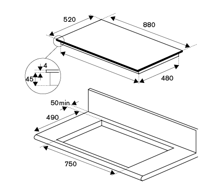 Для установки варочной поверхности необходима рабочая поверхность толщиной не менее 30 мм, в которой производится вырез по размерам согласно схеме встраивания. По периметру выреза необходимо установить самоклеящуюся термоизоляционную ленту, которая идет в комплекте (в некоторых моделях она уже наклеена по периметру варочной поверхности). Под варочной поверхностью можно устанавливать духовки, оснащённые охлаждающим вентилятором, при этом необходимо обеспечить пространство между варочной поверхностью и духовым шкафом минимум 5 мм.