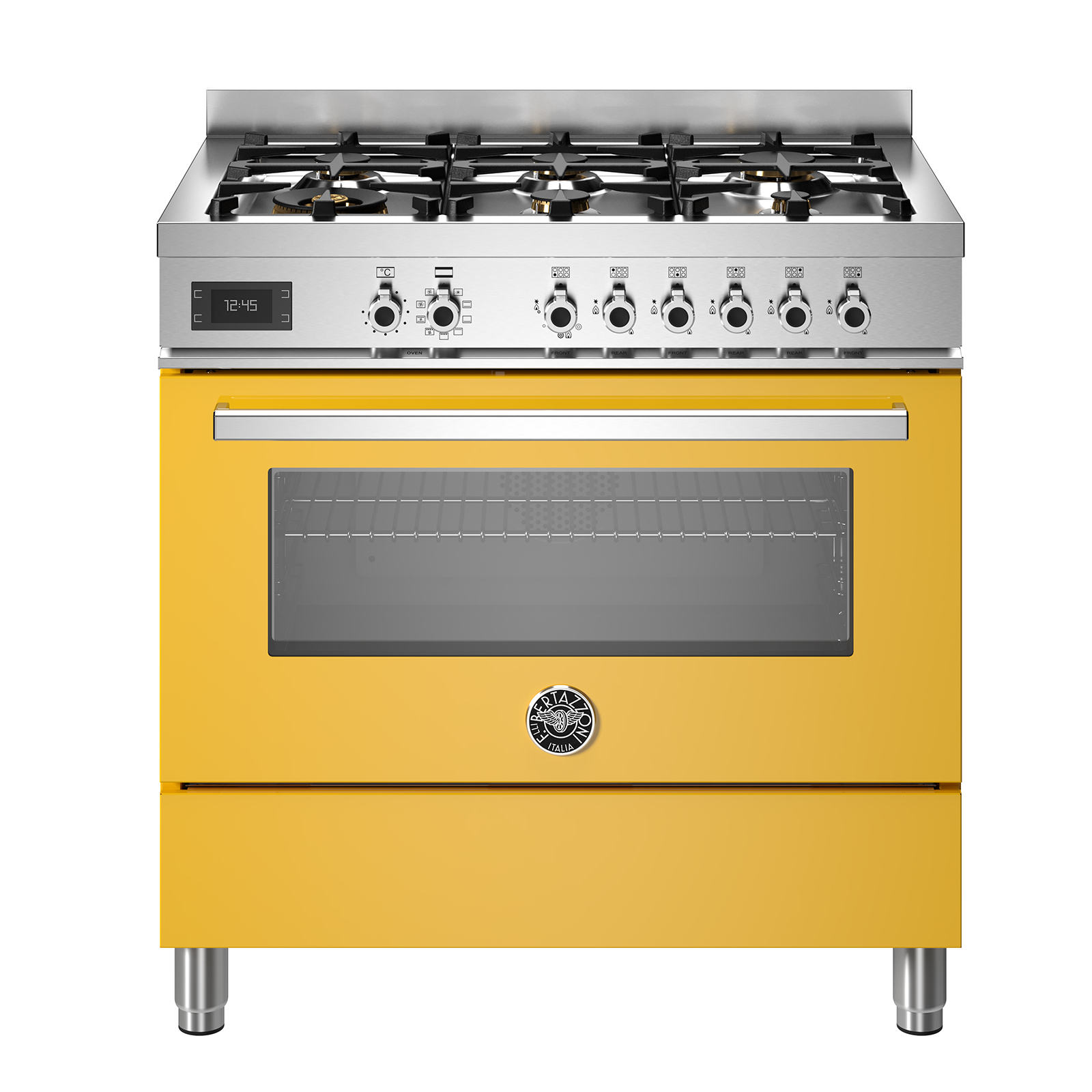 Газовый варочный центр Bertazzoni PRO96L1EGIT из линейки Professional с электрической духовкой, в желтом цвете