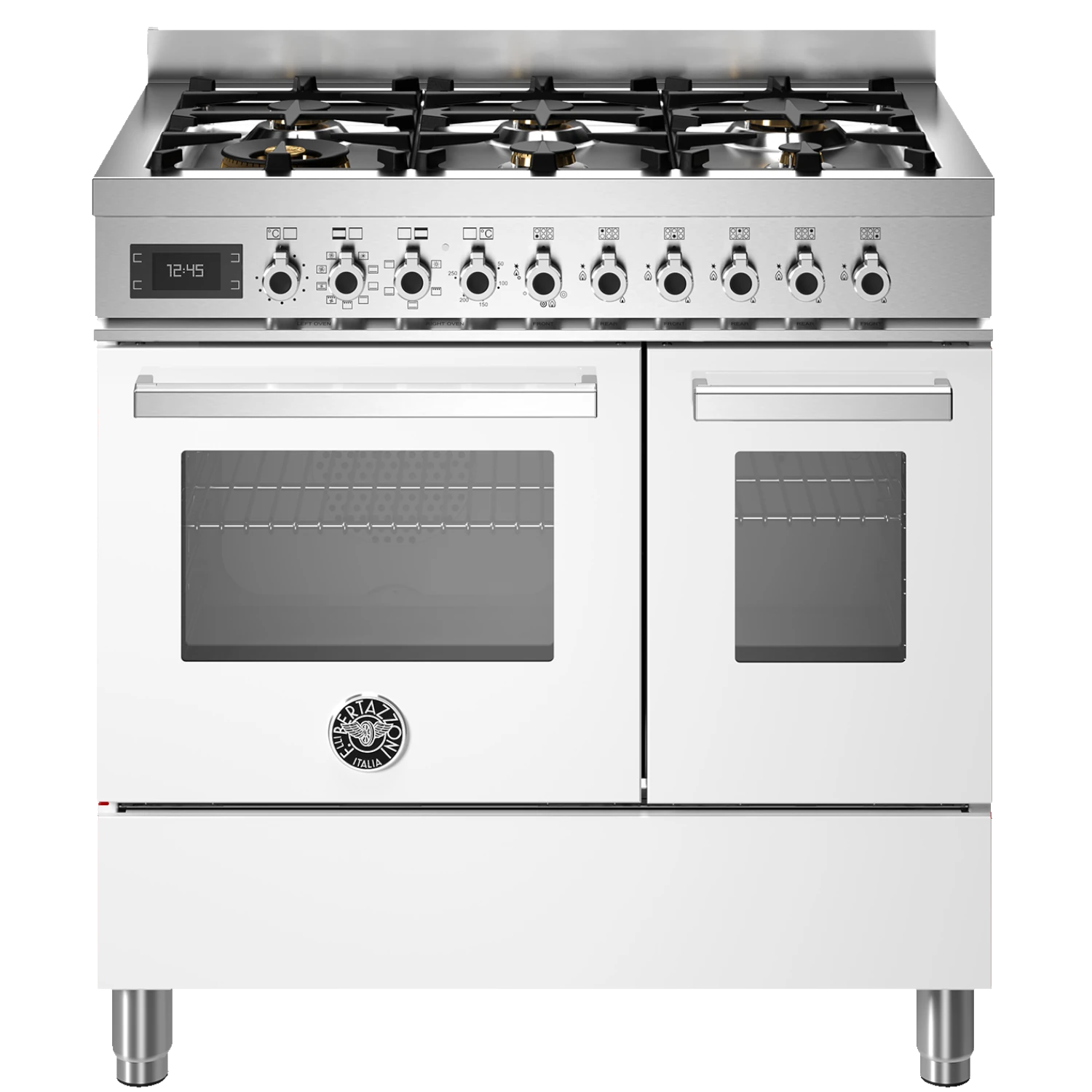 Газовый варочный центр Bertazzoni PRO96L2EBIT из линейки Professional с 2мя электрическими духовками, в отделке из белой эмали и нерж.стали