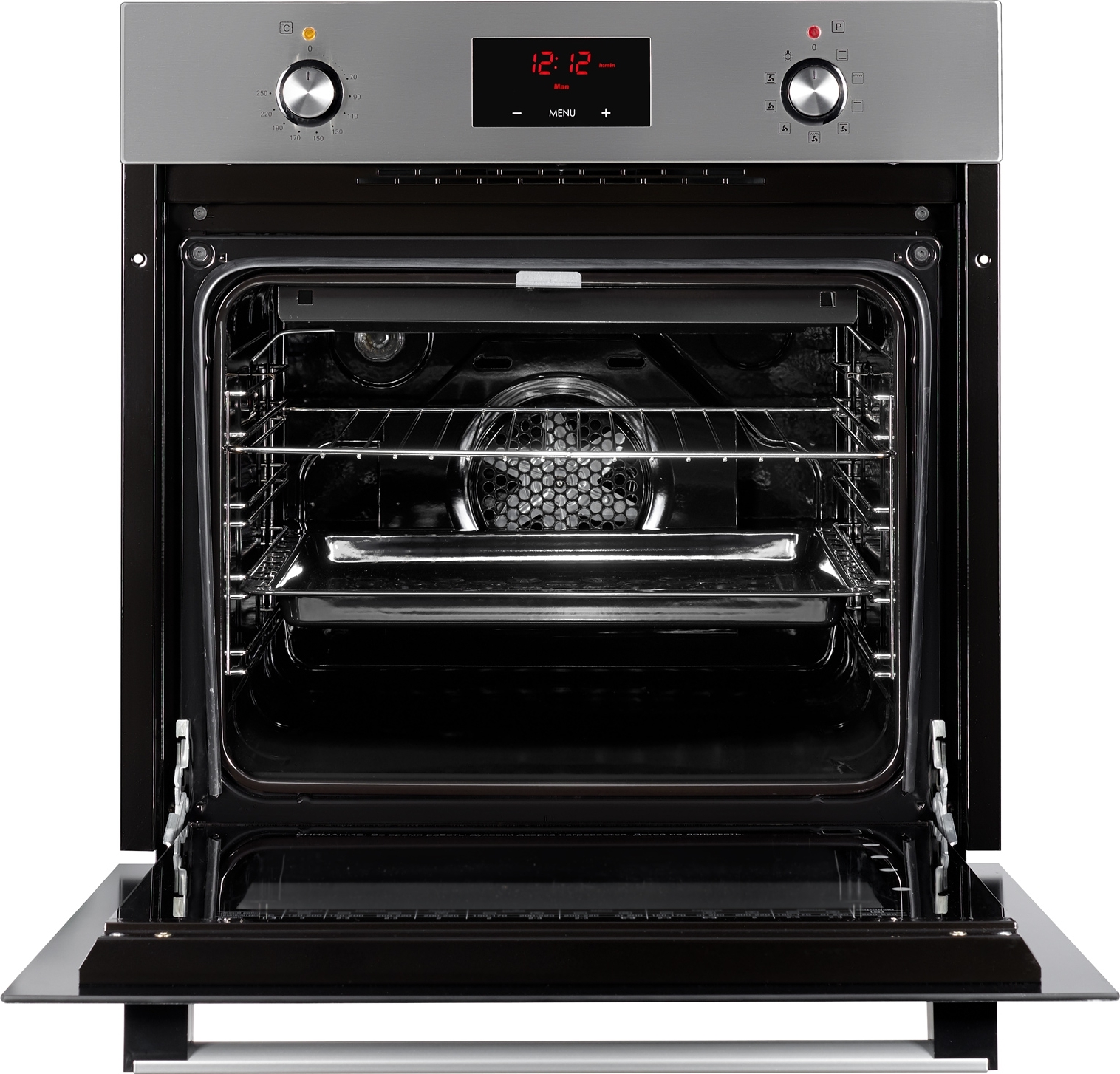 - турбовентилятор: равномерно распределяет тепло внутри духовки, реализуя эффективный нагрев продуктов, оптимальный для одновременного приготовления сразу на нескольких уровнях