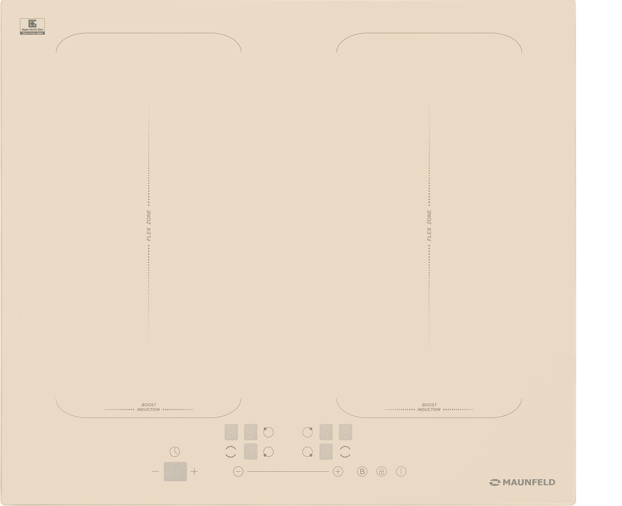 Индукционна варочная панель Maunfeld EVI.594-FL2-BG с двумя объединяемыми зонами, шириной 60 см в отделке из бежевого стекла