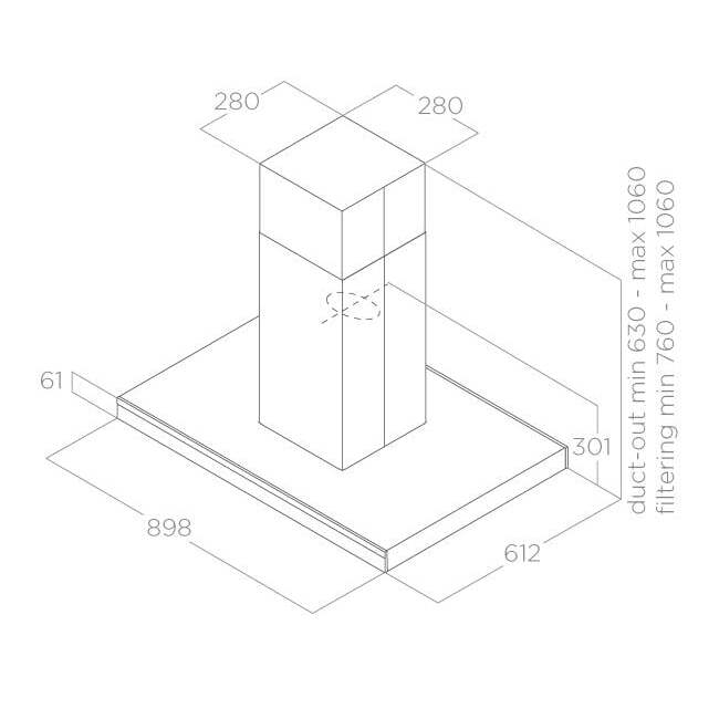 Т-образная островная вытяжка Elica ADELE IS BLIX/A/90 X 60 с шириной 90 см выполнена в нержавеющей стали и черном стекле. Она функционирует в режимах отвода и рециркуляции (с угольным фильтром) и имеет максимальную производительность 1300 м³/ч. Модель оснащена 3 скоростями и интенсивным режимом, управлением Touch Control и светодиодным освещением (2*7 Вт).