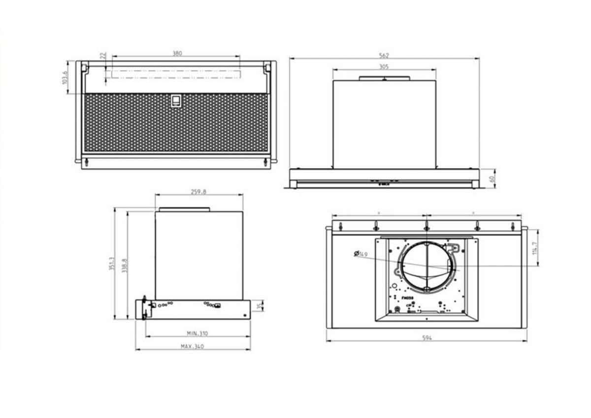 - вы можете установить эту вытяжку в мебельный шкаф шириной не менее и не более 60 см.