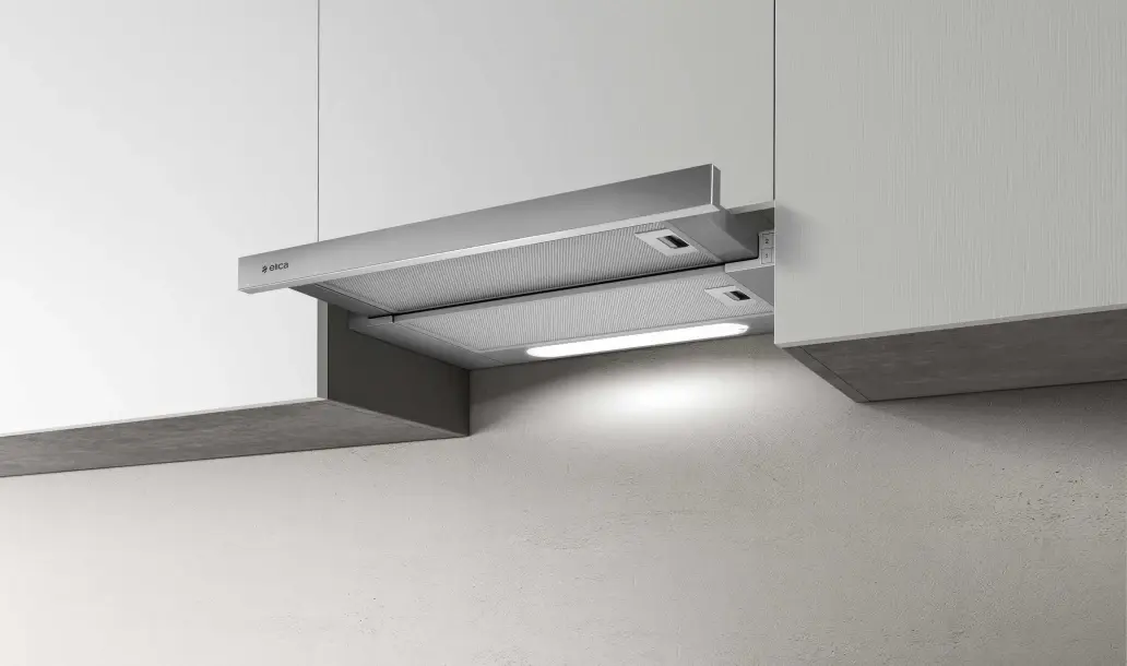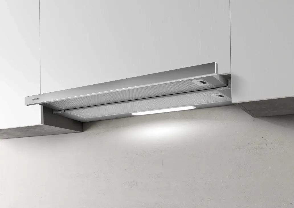 Встраиваемая вытяжка с телескопическим экраном в белом цвете ELITE 14 LUX WH/A/50 для установки в мебельный шкаф шириной 50 см. С производительностью 650 м3/час