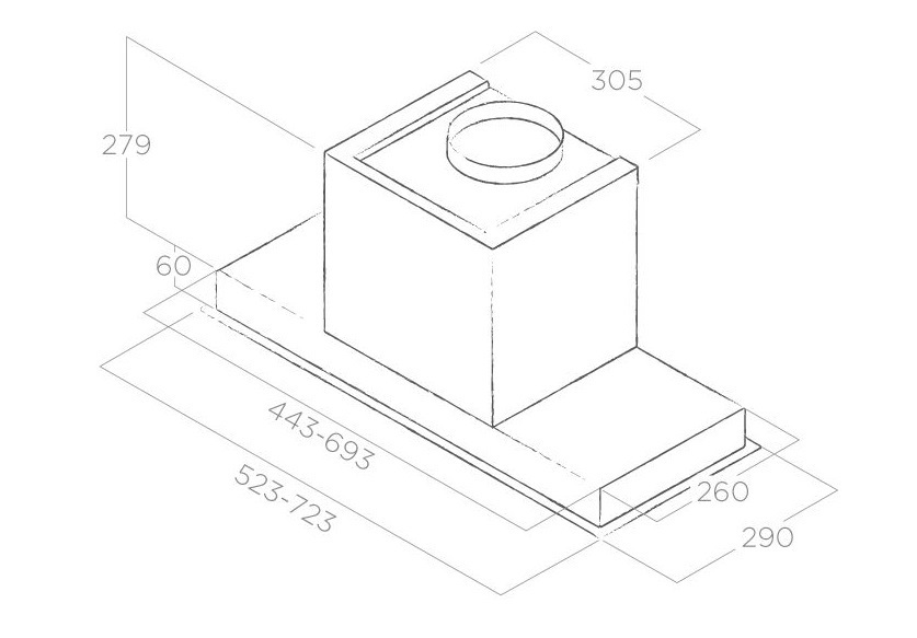Рециркуляция (фильтрация) - вытяжка в режиме фильтрации устраняет неприятные запахи при помощи специального фильтра и возвращает очищенный воздух на кухню. Этот тип режима работы вытяжки может использоваться в условиях отсутствия отверстий для вывода воздуха в вентиляционный канал и обеспечивает оптимальный микроклимат без вывода воздуха за пределы помещения. Для активации режима необходимо установить угольный фильтр (доп.опция) и вывести воздуховод за пределы мебельного шкафа.