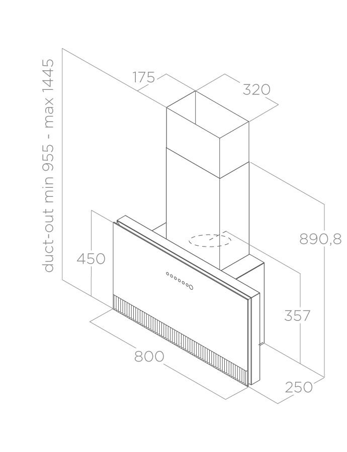 Вытяжка * настенный монтаж * ширина 80 см * цвет - СЕРОЕ стекло * режим отвода и рециркуляции * мощность 1200 (740) м.куб/час * управление через приложение Elica Connect * электронное сенсорное управление * 3 скорости + интенсивный режим * светодиодное освещение Strip Led 1*7 Вт * индикация насыщения фильтра * уровень шума 57 дБ * размеры прибора (Ш*В*Г) 80*45*25 см