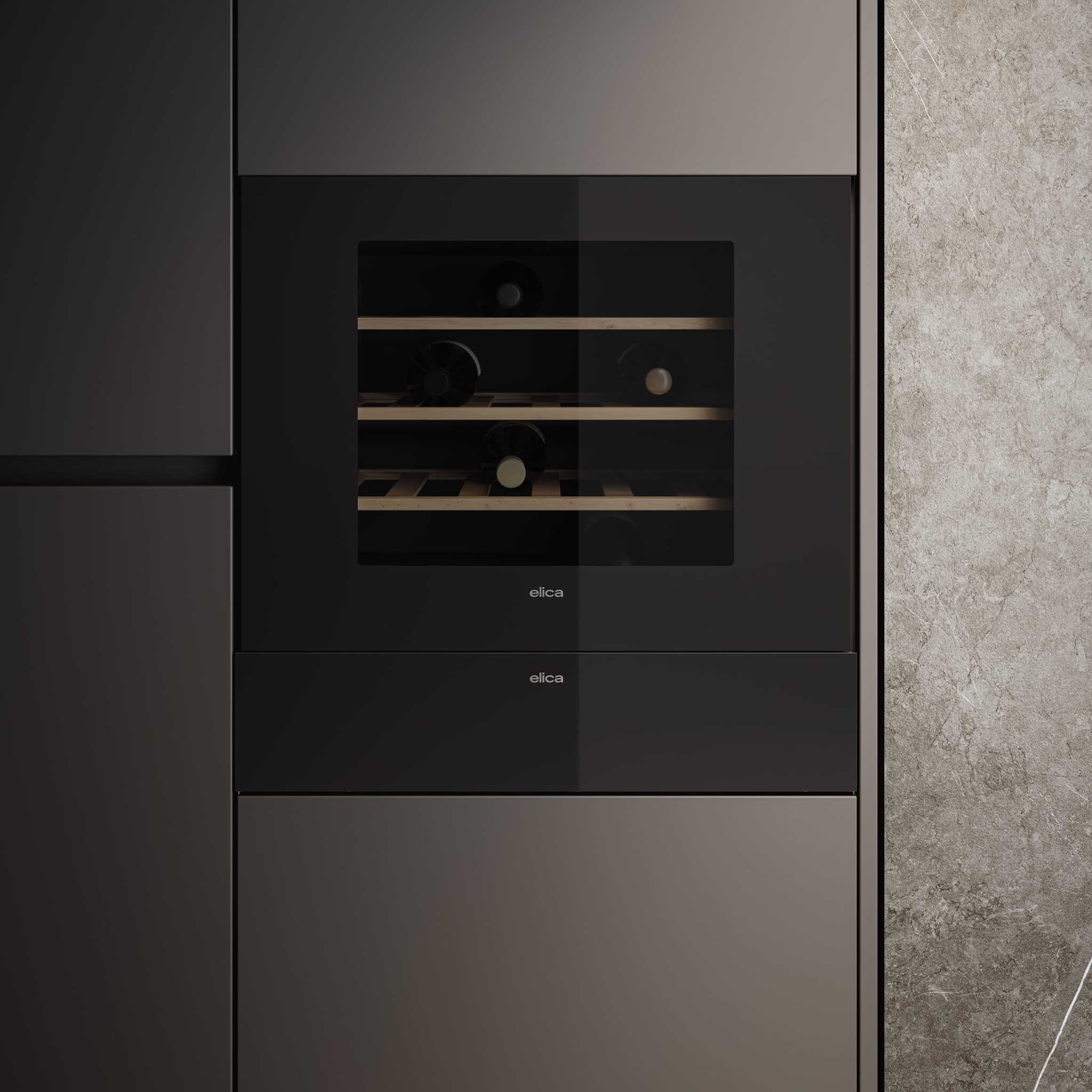 Встраиваемый винный шкаф Elica VERITAS BI24 в отделке из черного стекла, высота 45 см
