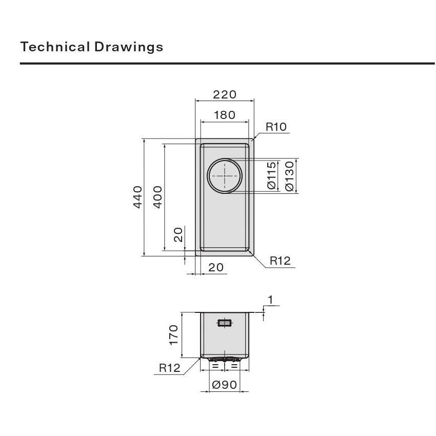 Встраиваемая кухонная мойка Falmec COMO 18 F, в мебельную базу на 30 см, в отделке нерж.сталь