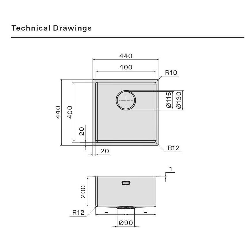 Встраиваемая кухонная мойка Falmec COMO 40 F, в мебельную базу на 45 см, в отделке нерж.сталь