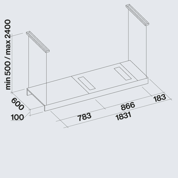 Островная вытяжка, ультратонкая, шириной 180 см Falmec LIGHT 180 black с потолочным креплением, производительностью 800 м3/час