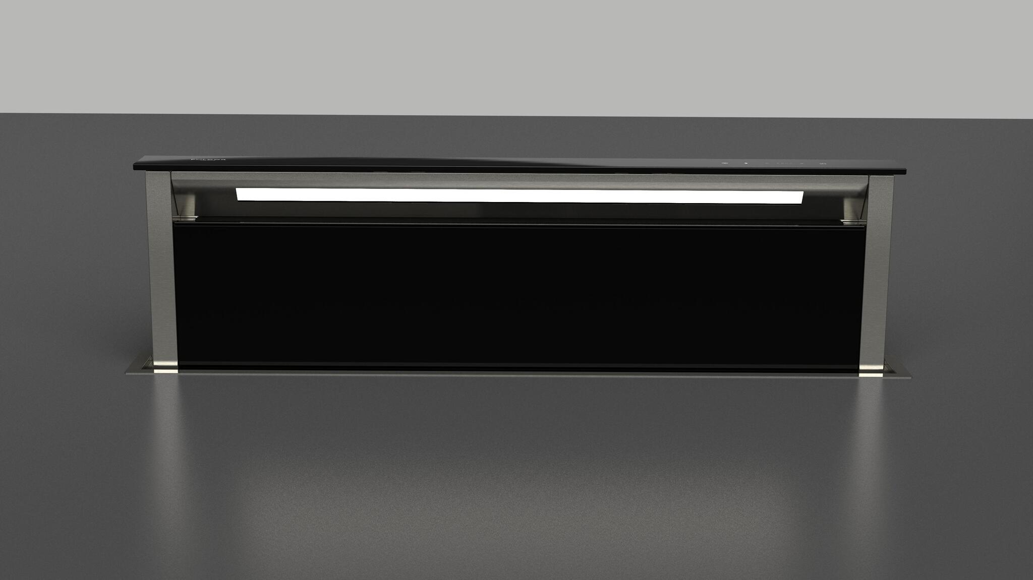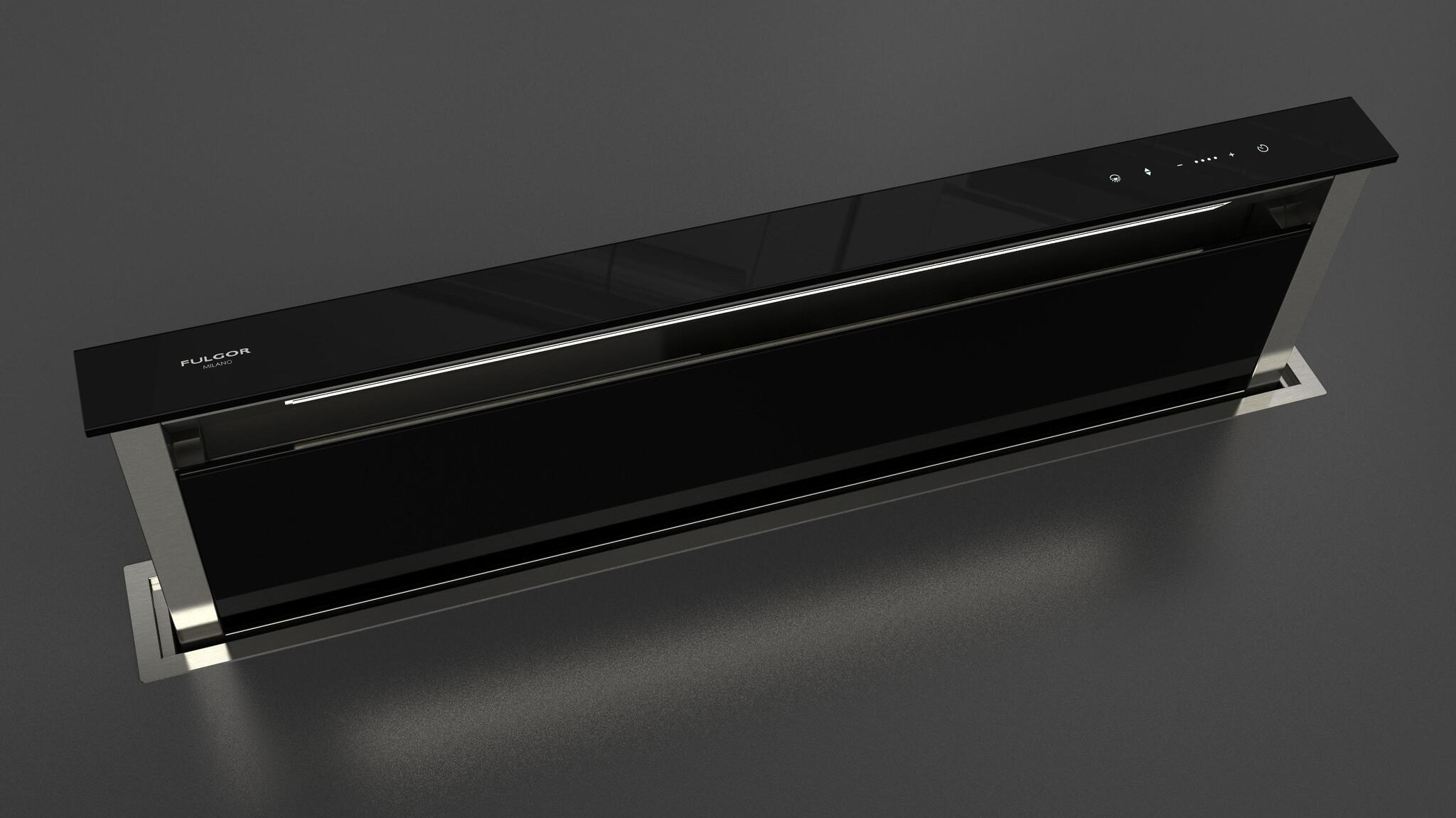 Встраиваемая в столешницу вытяжка шириной 112 см Fulgor Milano FDDH 1120 TRC BK в отделке из черного стекла, работает в режиме рециркуляции
