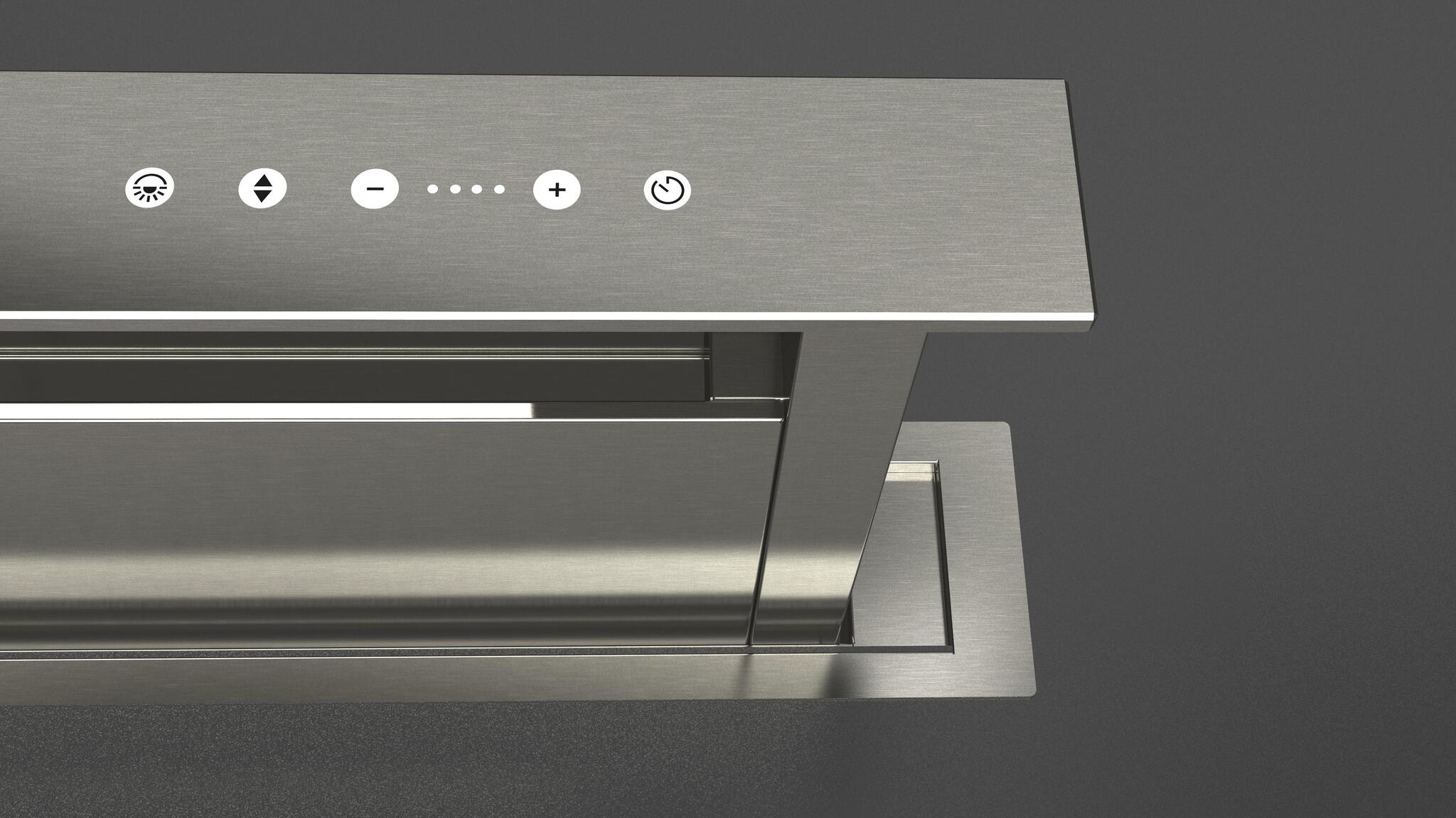 Электронное управление позволяет управлять уровнями экстракции, открытием/закрытием элементов зоны вытяжки, таймером и индикаторами замены фильтра.