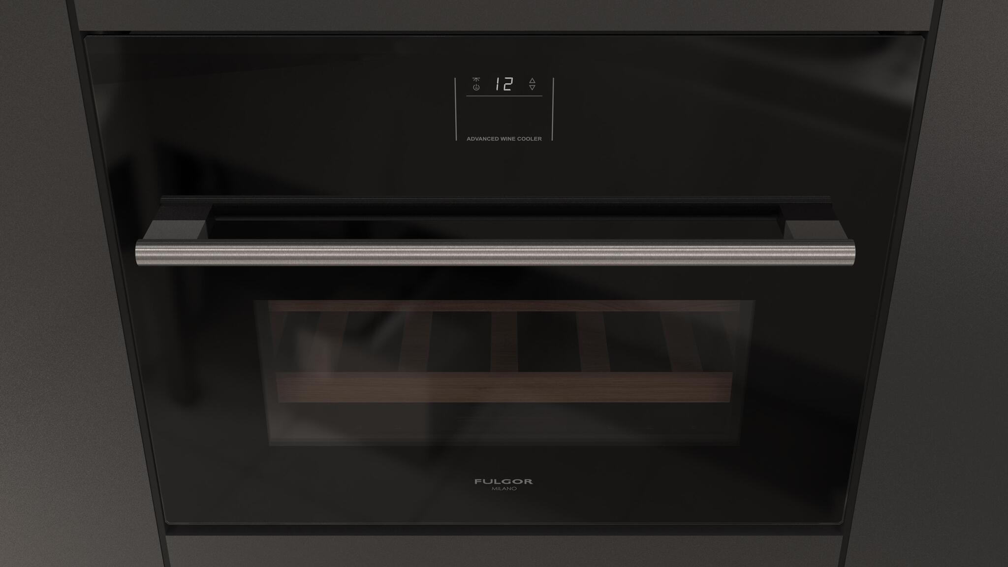 Встраиваемый винный шкаф Fulgor Milano FWC 4500 TC FO BK, в отделке из черного стекла