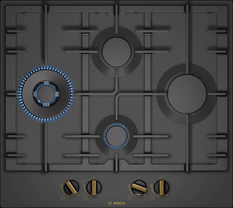 Газовая варочная поверхность Bosch PCI6B3B90R в ретро стиле, в отделке из черной эмали
