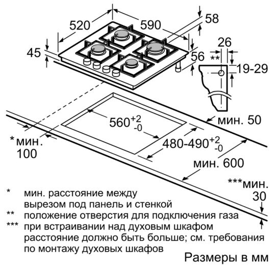 Газовые варочные панели устанавливаются исключительно специалистами газовой службы вашего города.