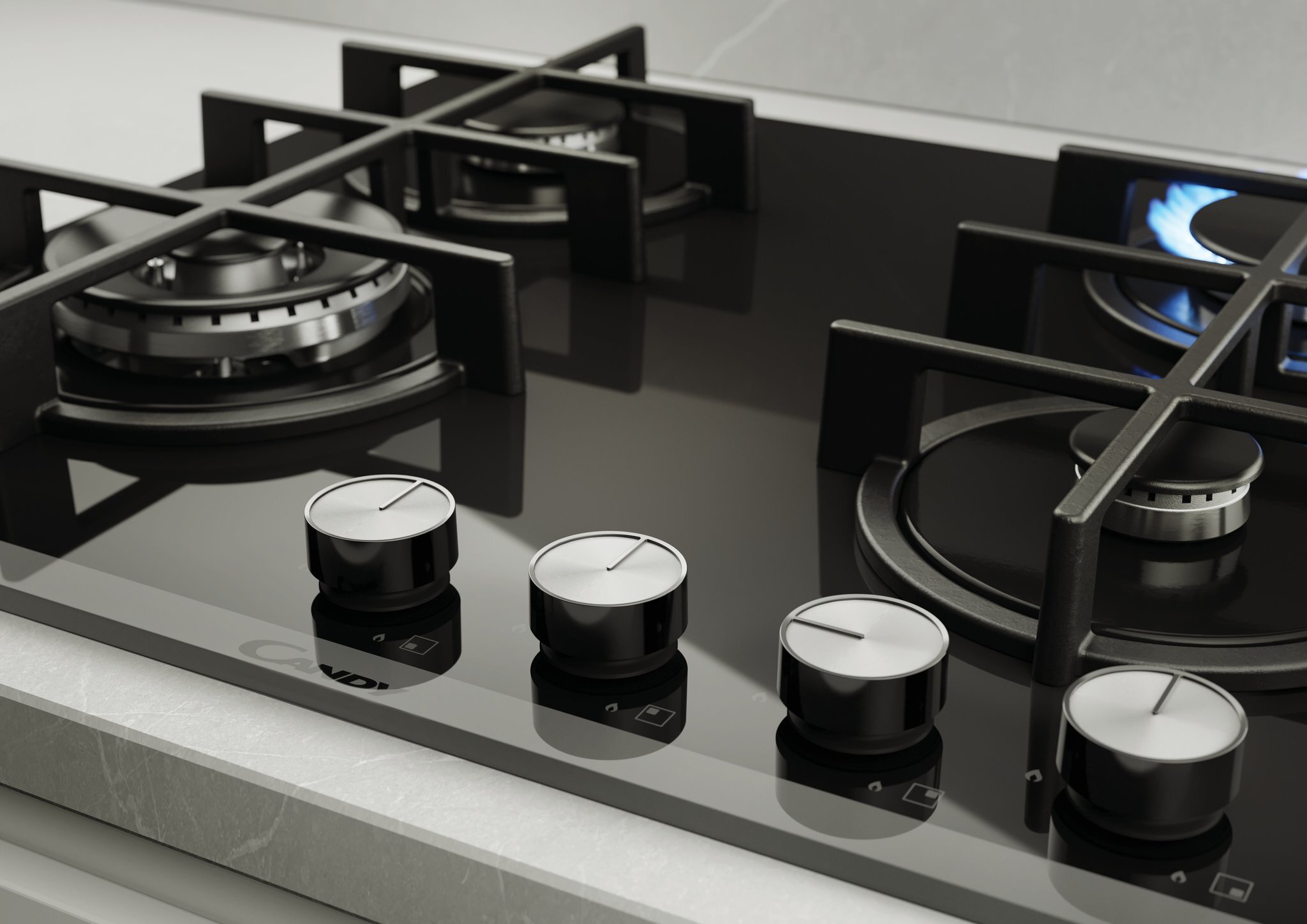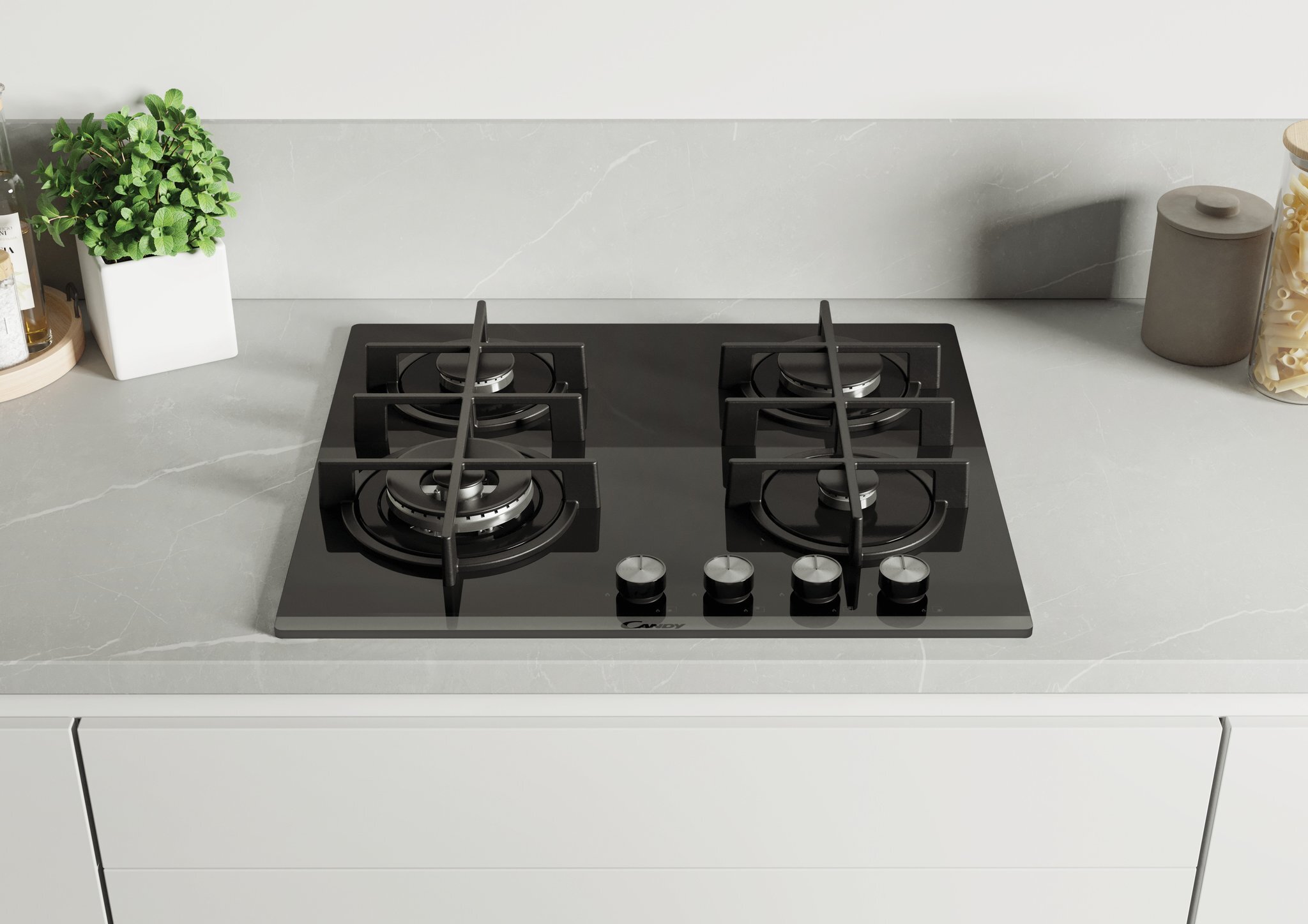 Встраиваемая газовая варочная панель на стекле Candy CVG6BF4WEB шириной 60 см, в отделке из черного стекла