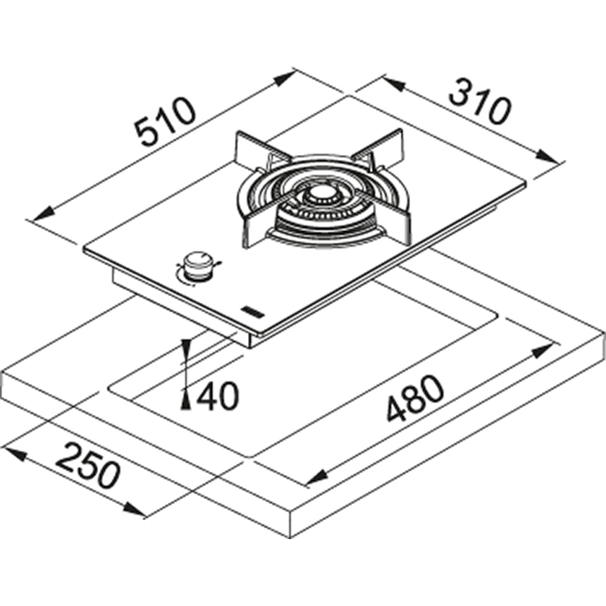 Встраиваемая газовая варочная панель серии "домино" Franke FHCR 301 1G HE BK С шириной 31 см в отделке черное стекло