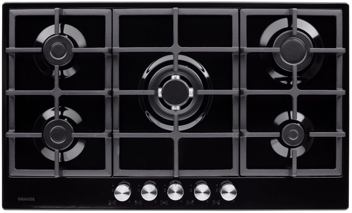 Газовая варочная панель Graude GS 90.1 SM шириной 86 см в отделке из черного стекла