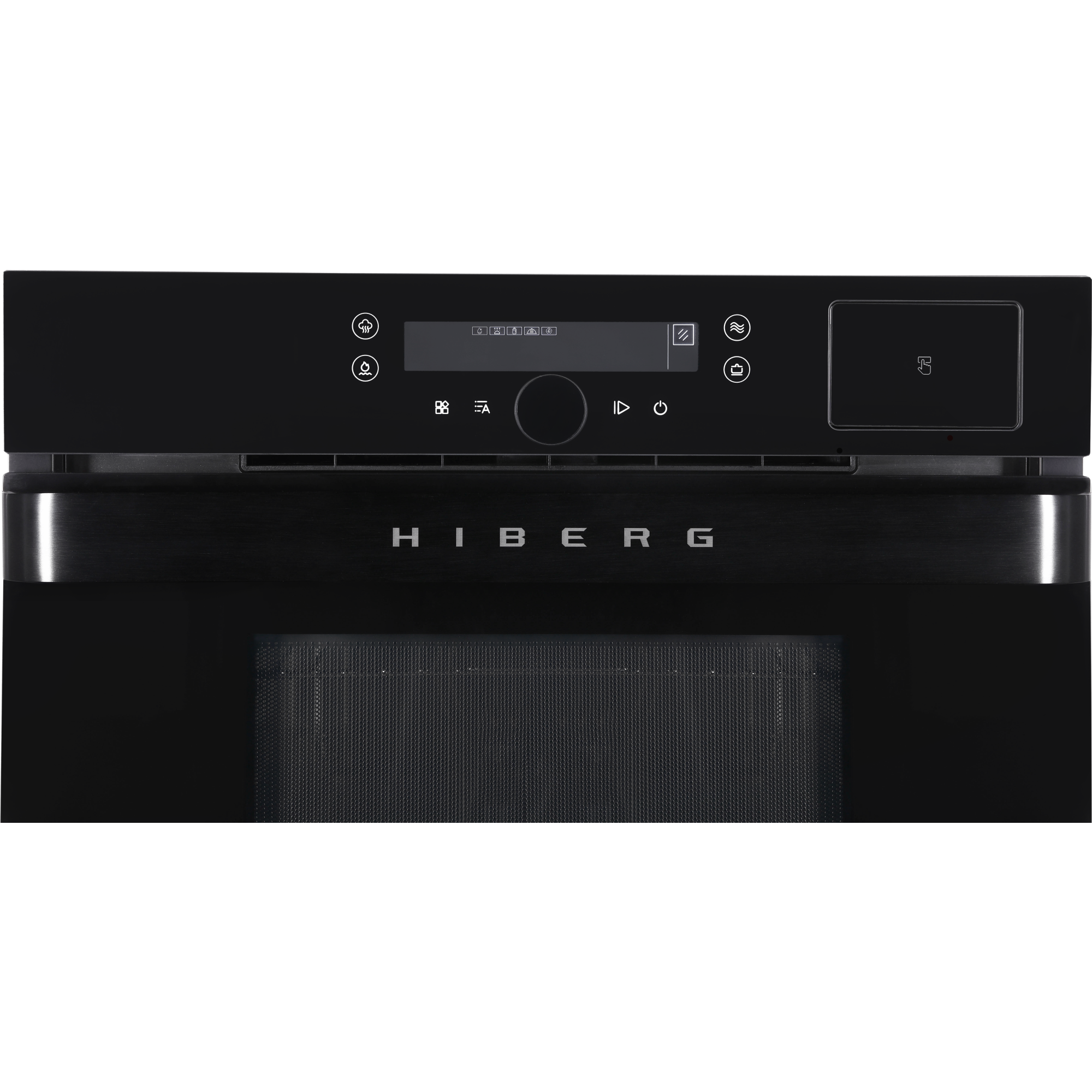 Встраиваемый компактный духовой шкаф Hiberg MS-VM 5115 B SMART с свч и паром, в отделке из черного стекла, высотой 45 см