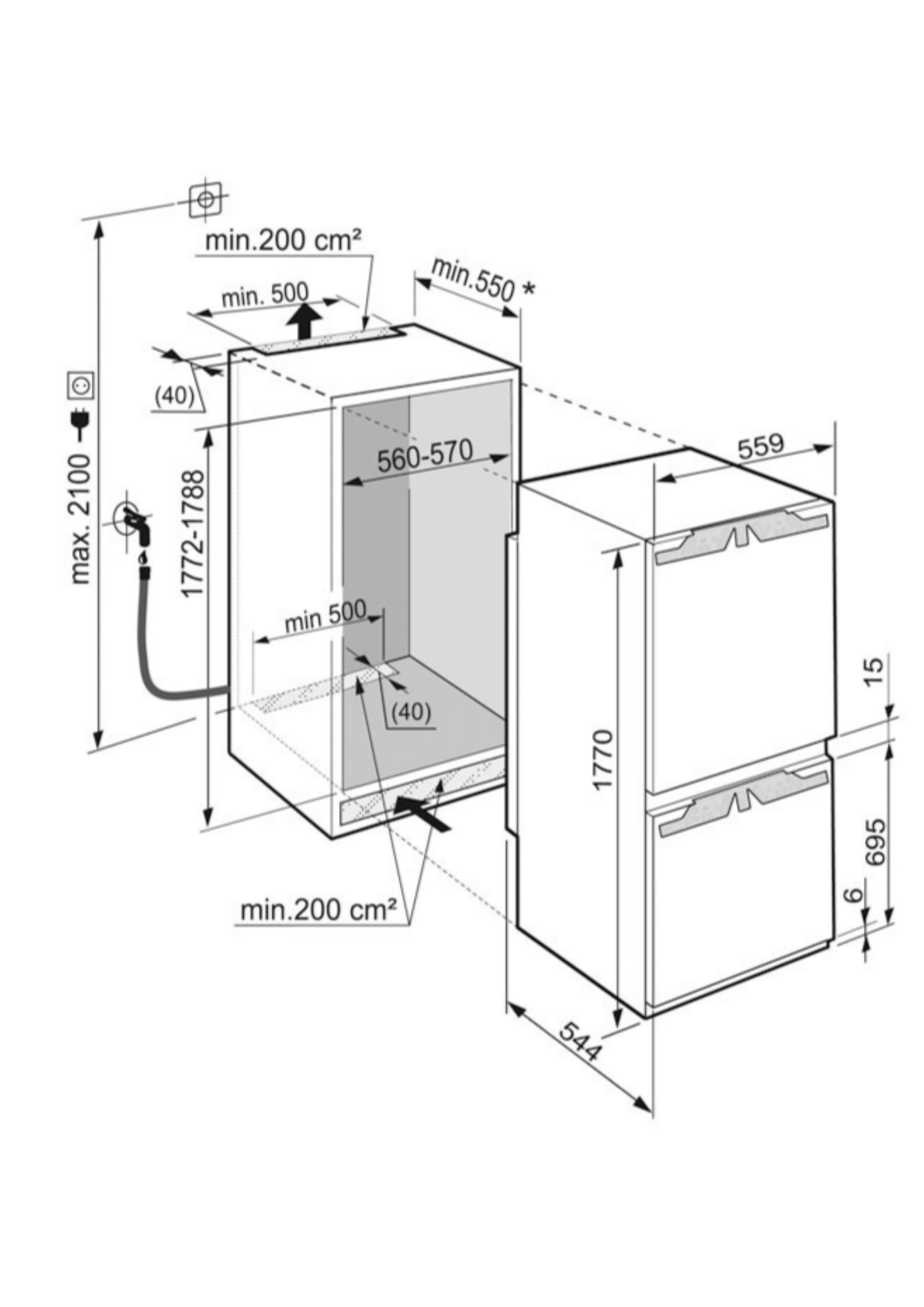 - НЕ забудьте!!! Данная модель холодильника с автоматическим ледогенератором, и требует подключения к воде (предусмотрите водопроводный кран).