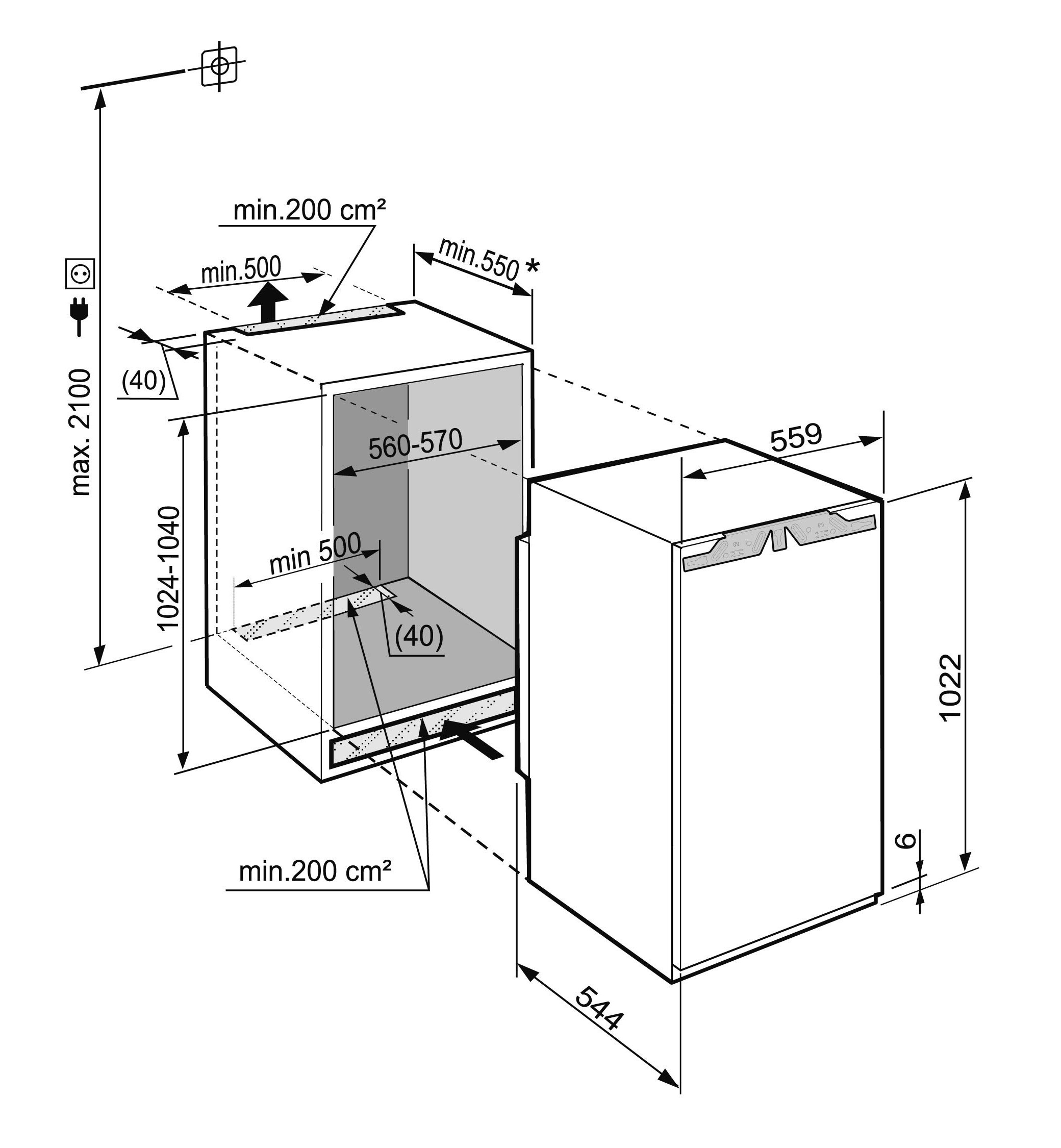 Встраиваемый однокамерный холодильник высотой 102 см для установки в колонну Liebherr IK 1920 с зоной BioFresh