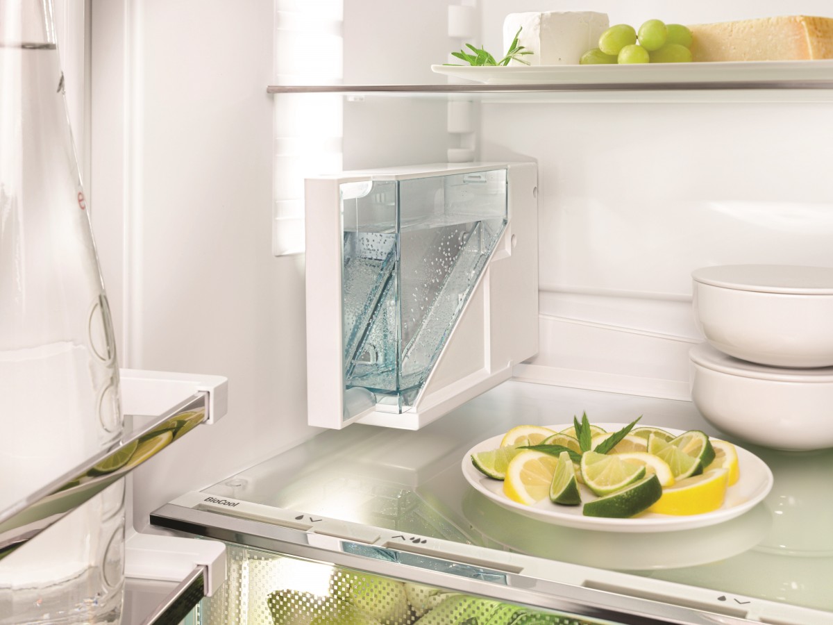 Ледогенератор IceMaker с 1,2 литровым резервуаром – это инновационное решение для производства кубиков льда даже при отсутствии стационарной подачи или недостаточно высоком качестве питьевой воды. Для наполнения водой резервуар легко извлекается из холодильника.
