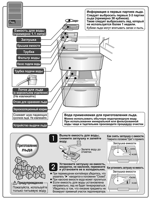 При подаче в ледогенератор вода очищается от примесей, бактерий и хлора с помощью LED освещения и фильтра для получения кристально чистого и свежего льда. Срок замены фильтра — 10 лет.