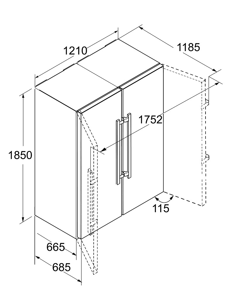 Двухдверный отдельностоящий холодильник Side-by-Side шириной 120 см в отделке из нерж.стали с возможностью оснащения модулем для удаленного управления (*доп.опция) и зоной BioFresh Liebherr SBSes 8663