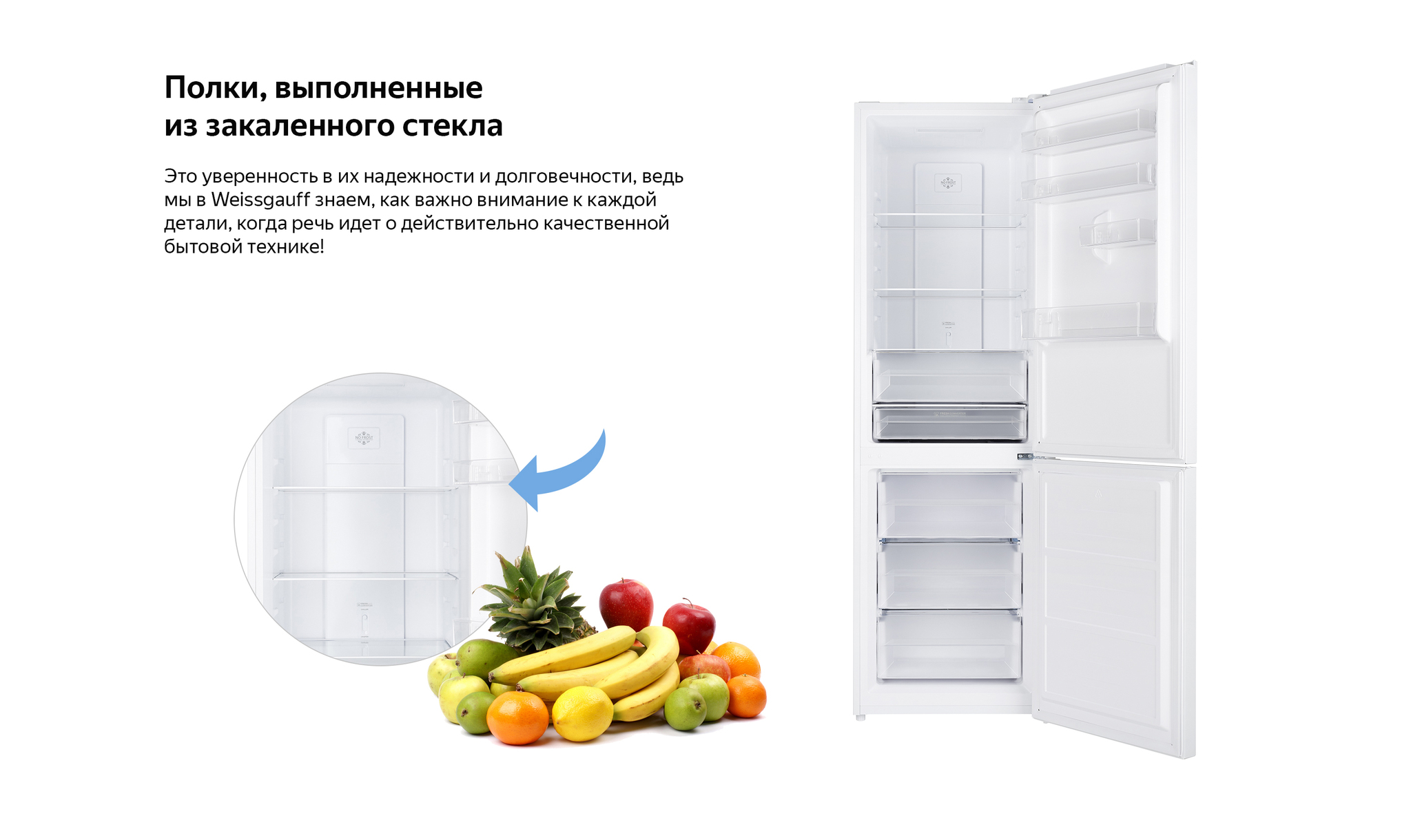 Холодильник Weissgauff WRK 2000 WNF шириной 60 см, в белом цвете с системой NoFrost