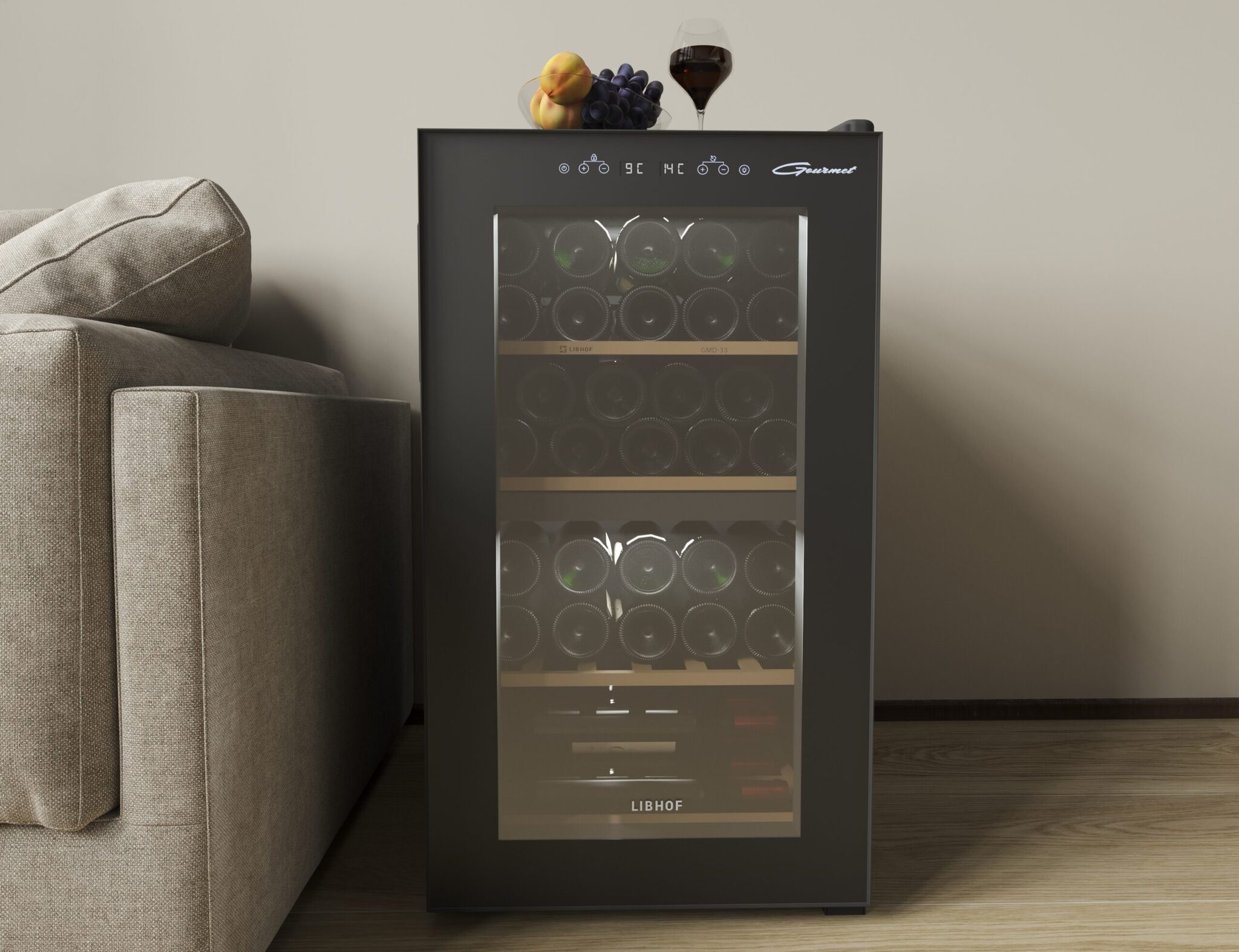 Винный шкаф с 2мя температурными зонами Libhof GMD-33 Black, в отделке из черного стекла