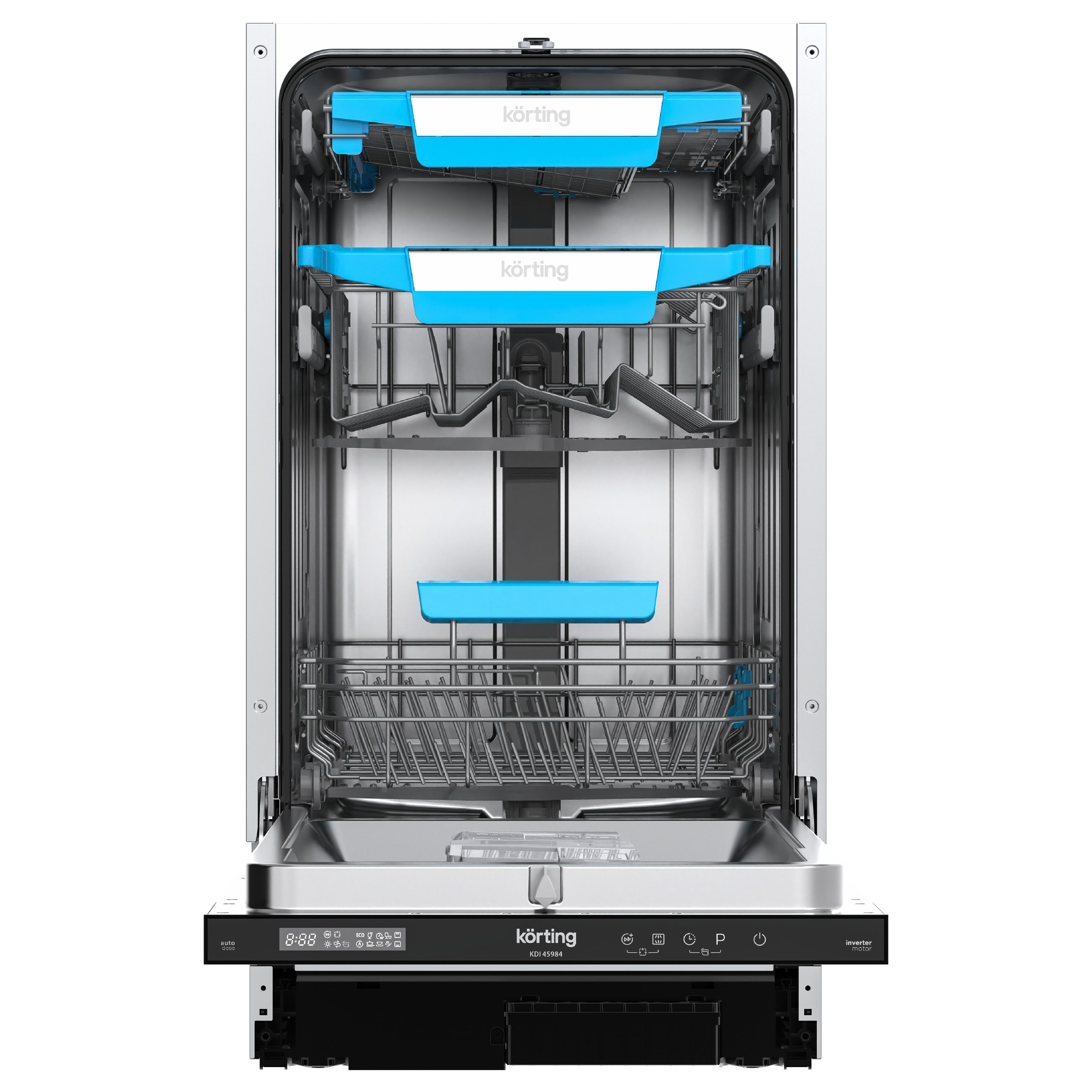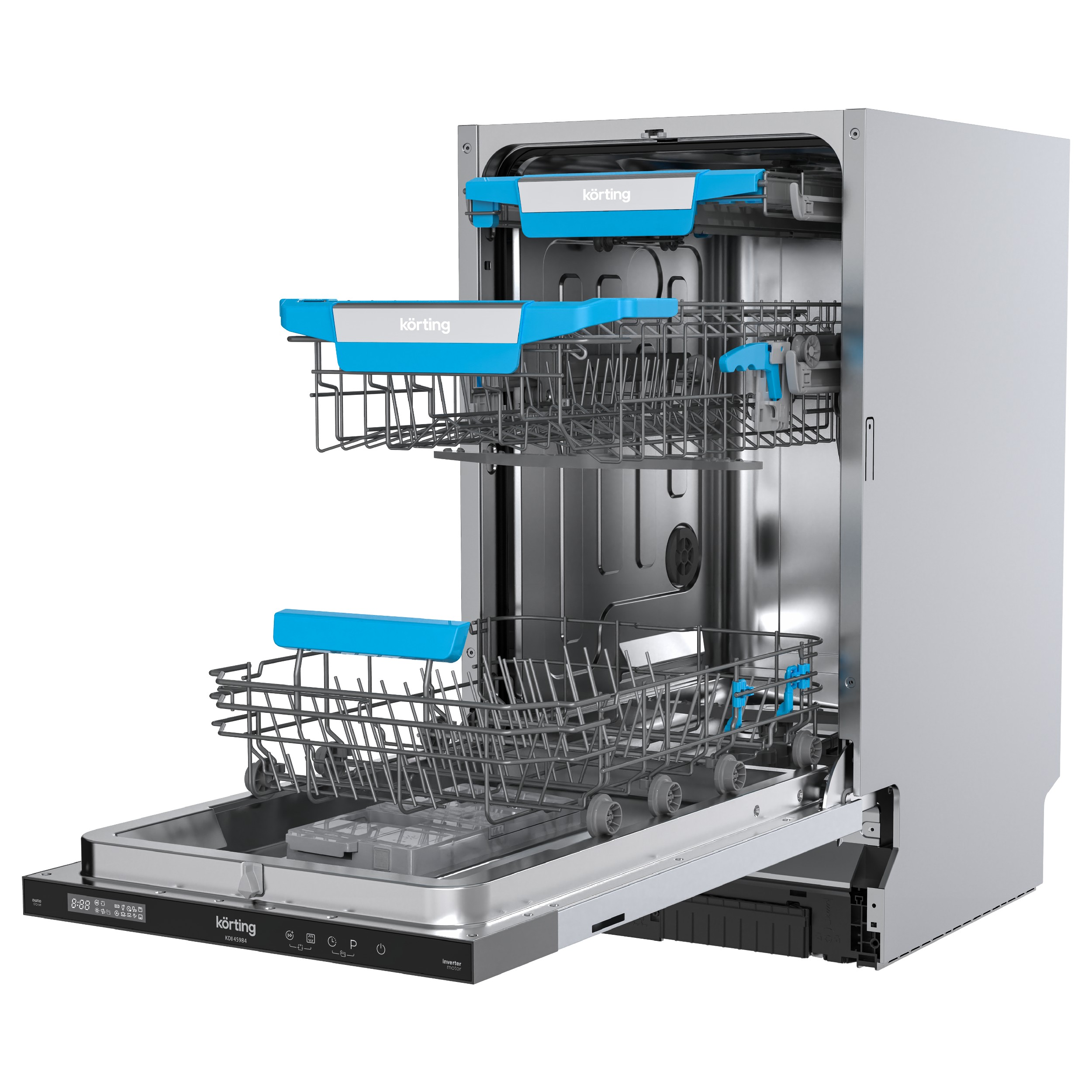 Встраиваемая посудомоечная машина Korting KDI 45984 шириной 45 см и вместимостью 10 комплектов, с автодозированием чистящих средства