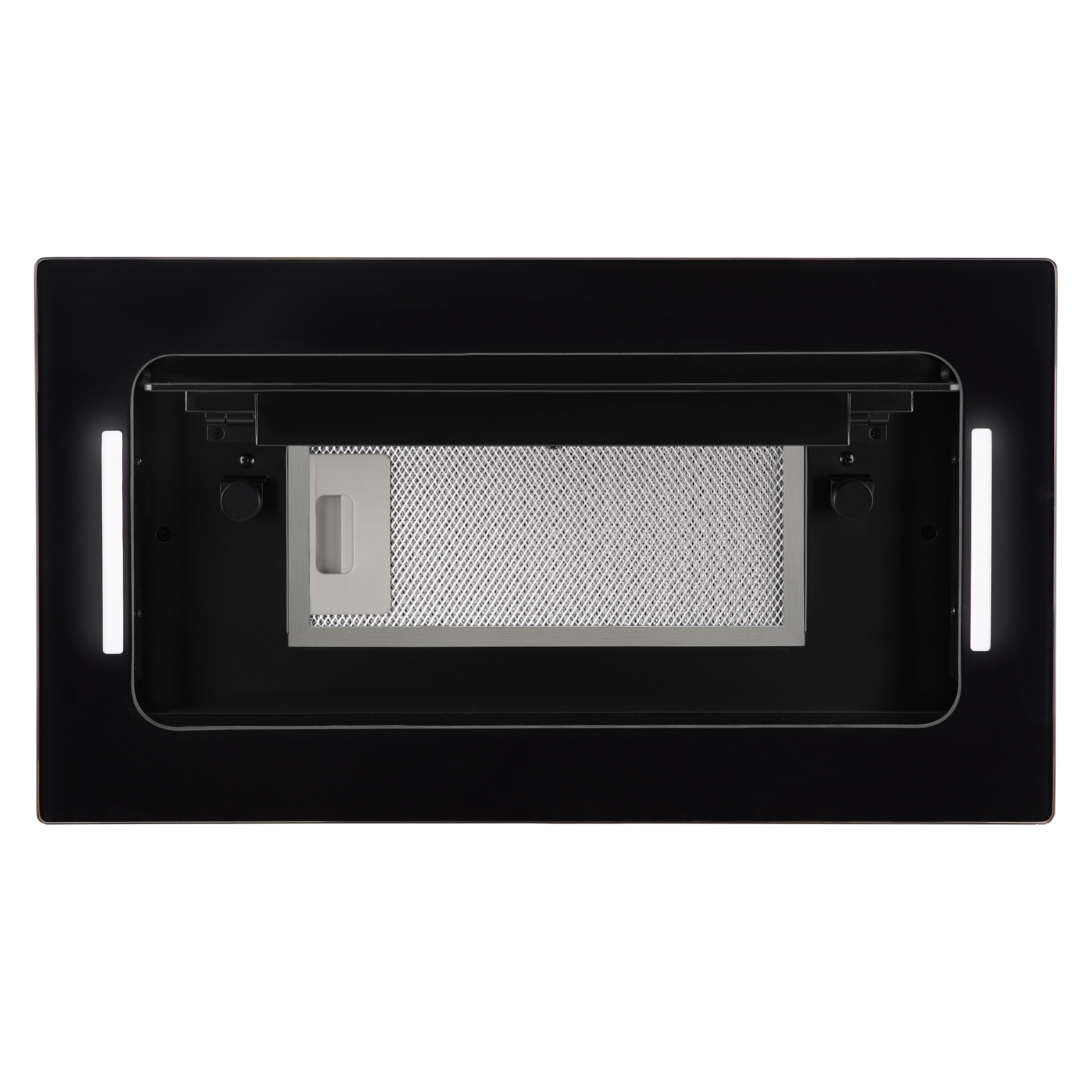 Встраиваемая вытяжка Korting KHI 6099 ICGN шириной 52 см в отделке из черного стекла, работает в паре с варочной панелью
