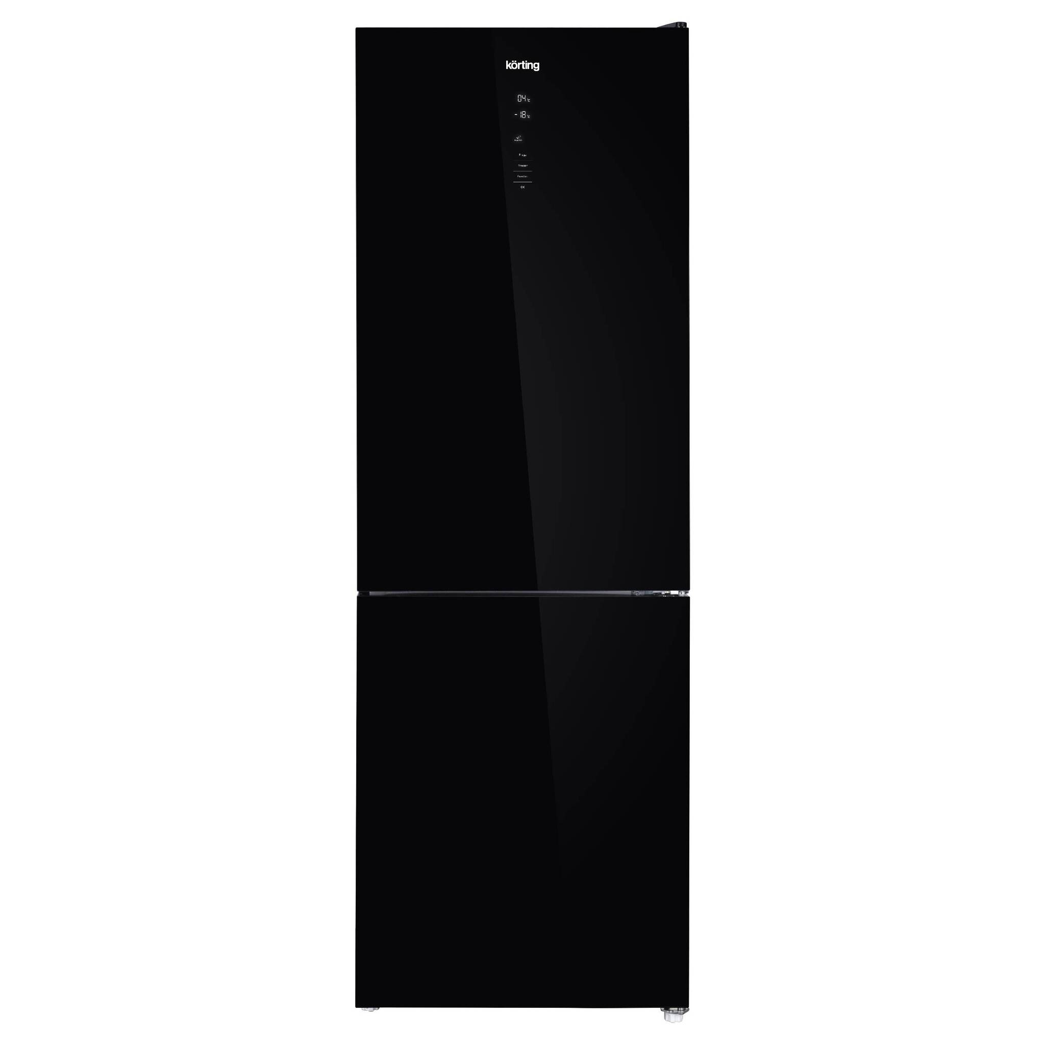 Холодильник Korting KNFC 61869 GN шириной 60 см, в отделке из черного стекла со скрытыми ручками