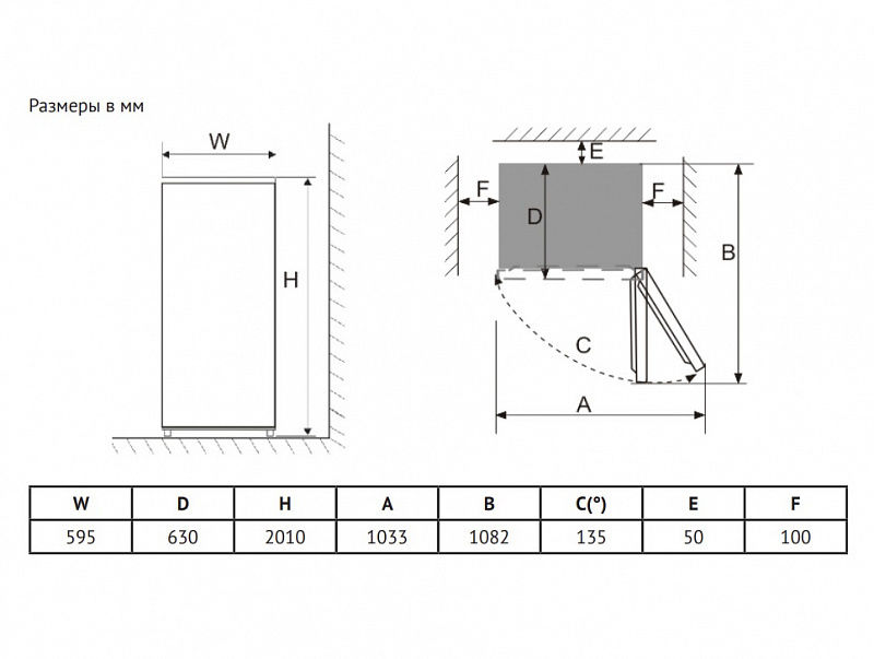 После транспортировки, перед подключением, следует оставить прибор в вертикальном положении в течение 2 часов. Установка прибора следует производить в вентилируемые ниши, с учетом указанных расстояний до ближайших поверхностей. Дверь холодильника может перенавешиваться и открываться в правую или левую сторону. Рекомендуется устанавливать холодильник / морозильник на удалении от нагревающихся приборов, чтобы сократить частоту включения компрессора и продлить срок службы прибора.