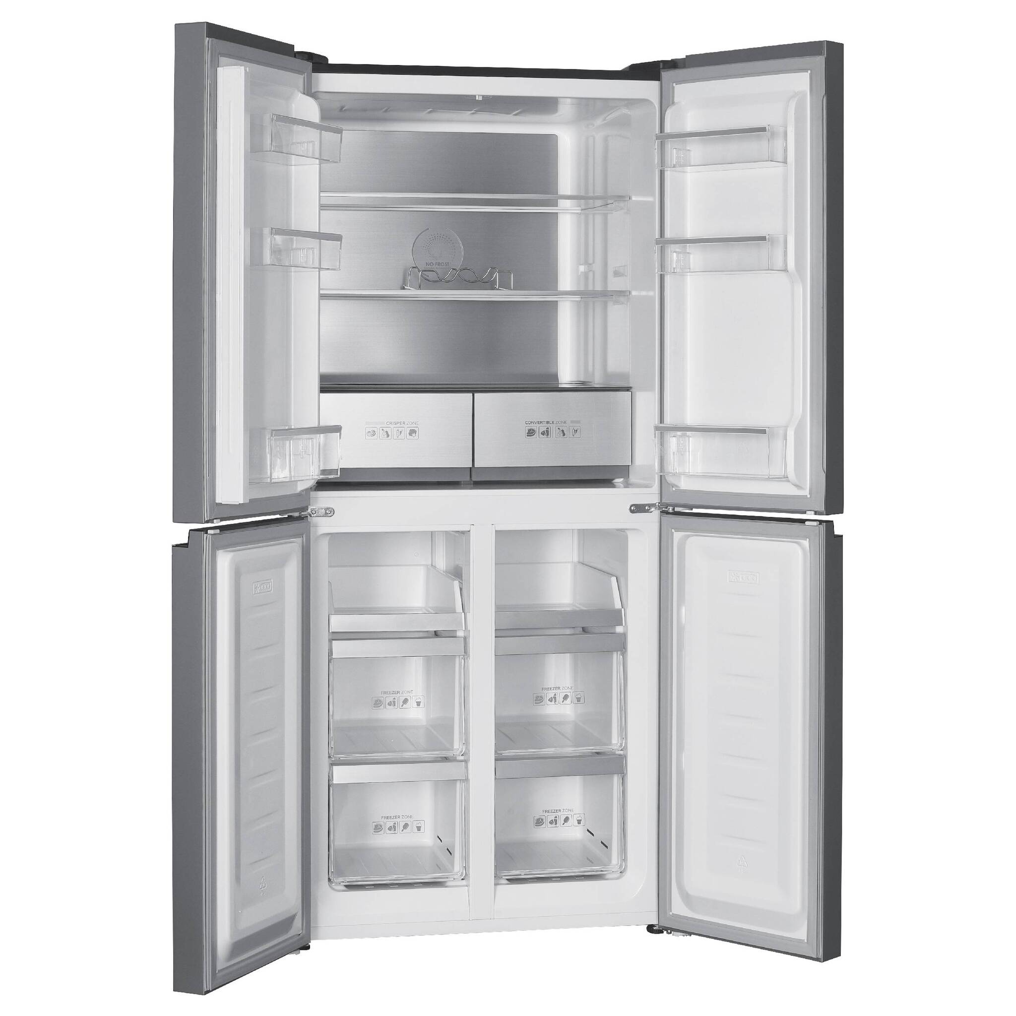 Многодверный холодильник Korting KNFM 84799 GN имеет ширину 79 см и изготовлен из черного стекла с скрытыми ручками. Его размеры составляют 79 см в ширину, 180 см в высоту и 73 см в глубину. Объем устройства составляет 466 литров, включая 291 литр холодильной и 175 литров морозильной камеры. Модель отличается системой размораживания Full No Frost, производительностью замораживания 13 кг в сутки и энергосберегающим инверторным компрессором.