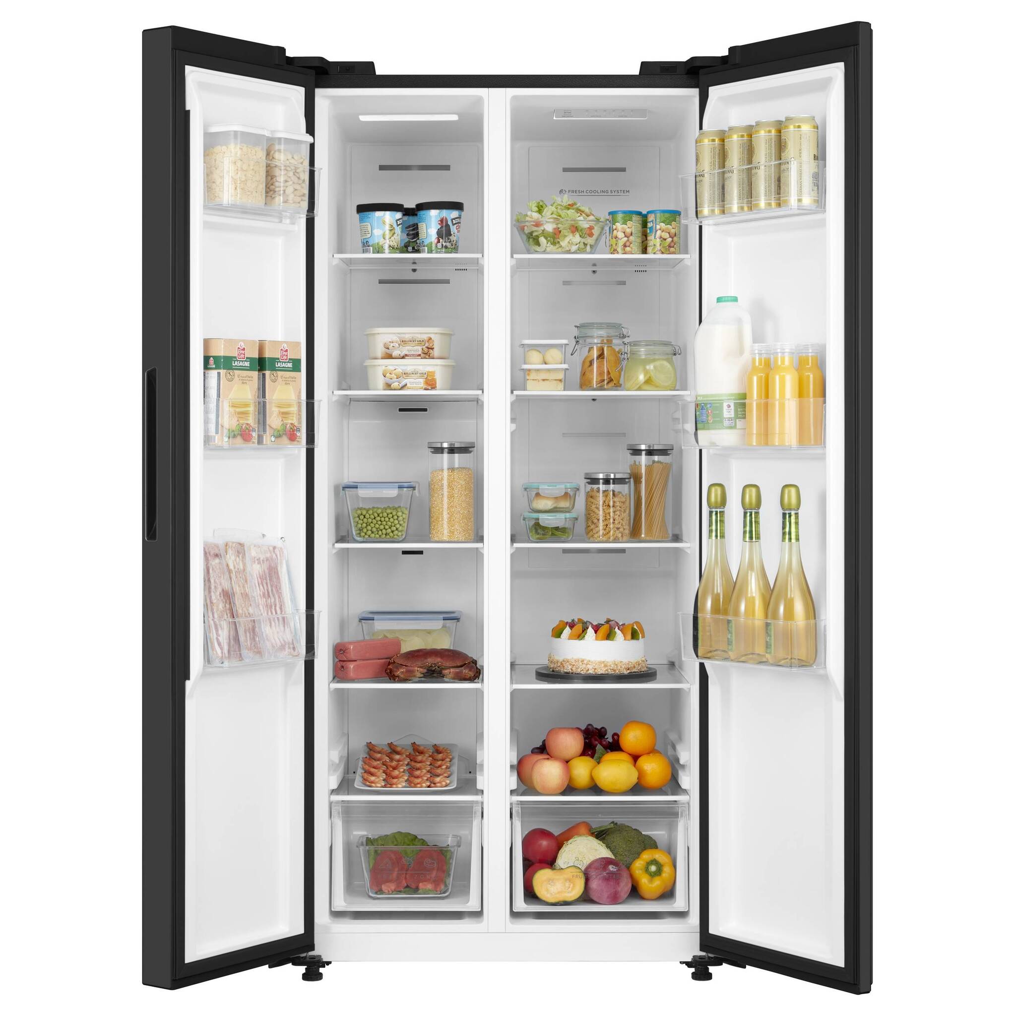 Холодильник Side-by-Side Korting KNFS 83177 N шириной 83 см, черного цвета, со скрытыми ручками