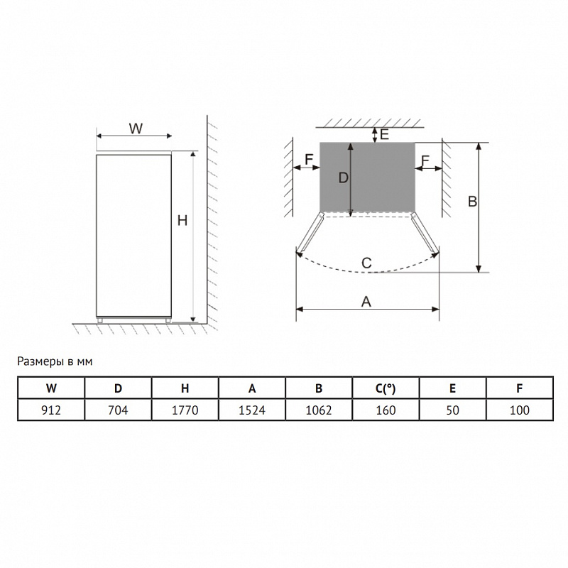 После транспортировки, перед подключением, следует оставить прибор в вертикальном положении в течение 2 часов. Установка прибора следует производить в вентилируемые ниши, с учетом указанных расстояний до ближайших поверхностей. Дверь холодильника может перенавешиваться и открываться в правую или левую сторону. Рекомендуется устанавливать холодильник / морозильник на удалении от нагревающихся приборов, чтобы сократить частоту включения компрессора и продлить срок службы прибора.