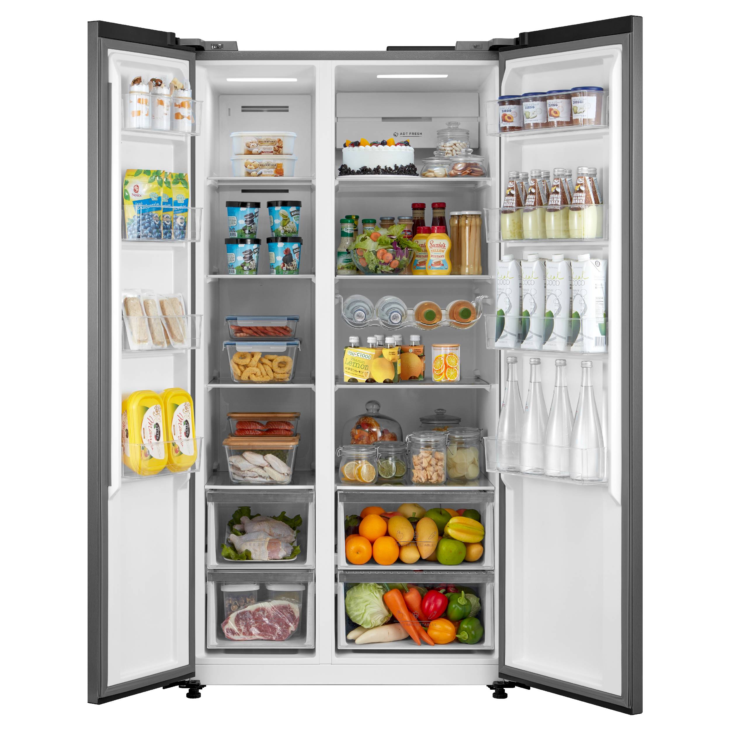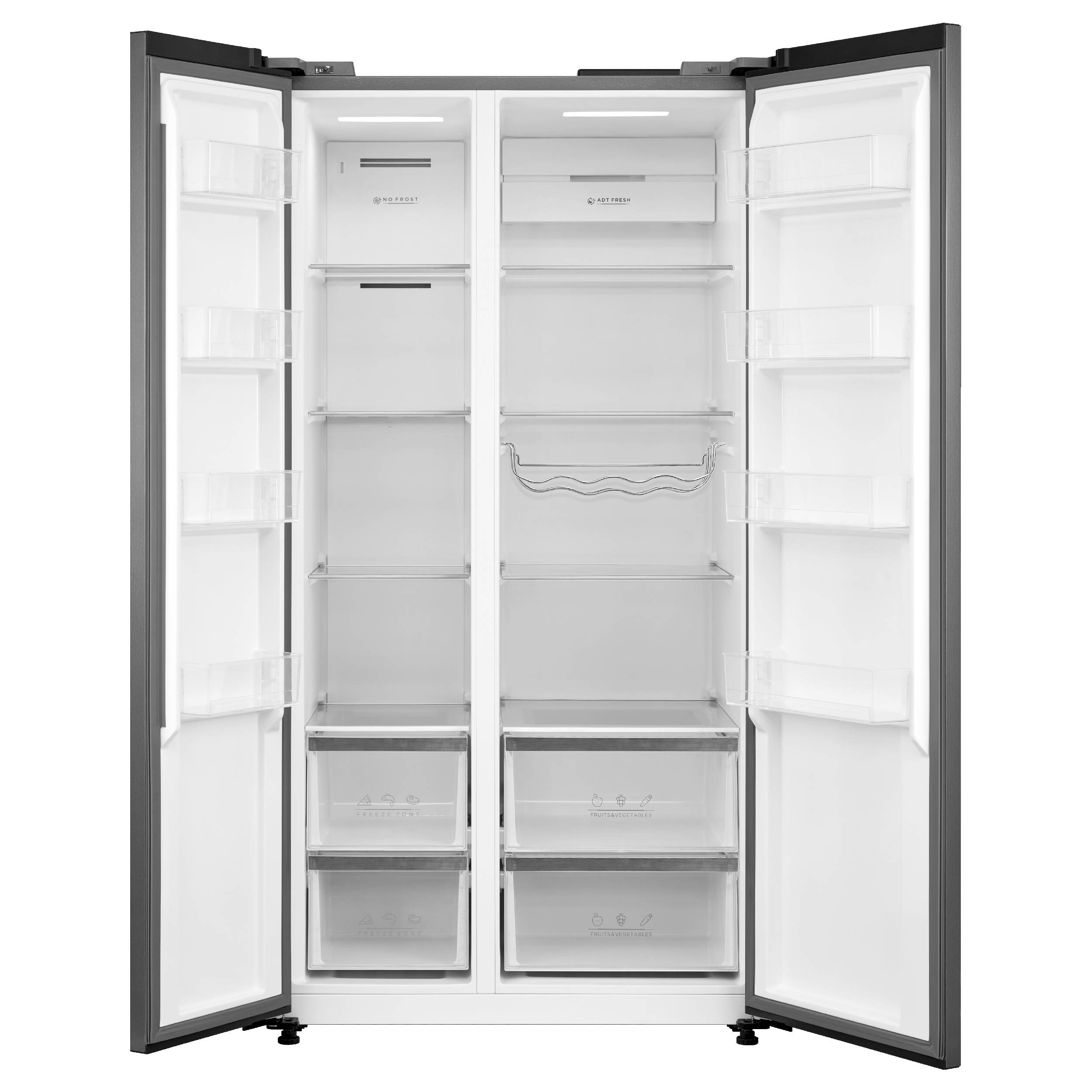 Холодильник Side-by-Side Korting KNFS 95780 X шириной 91 см, в отделке из нерж.стали со скрытыми ручками