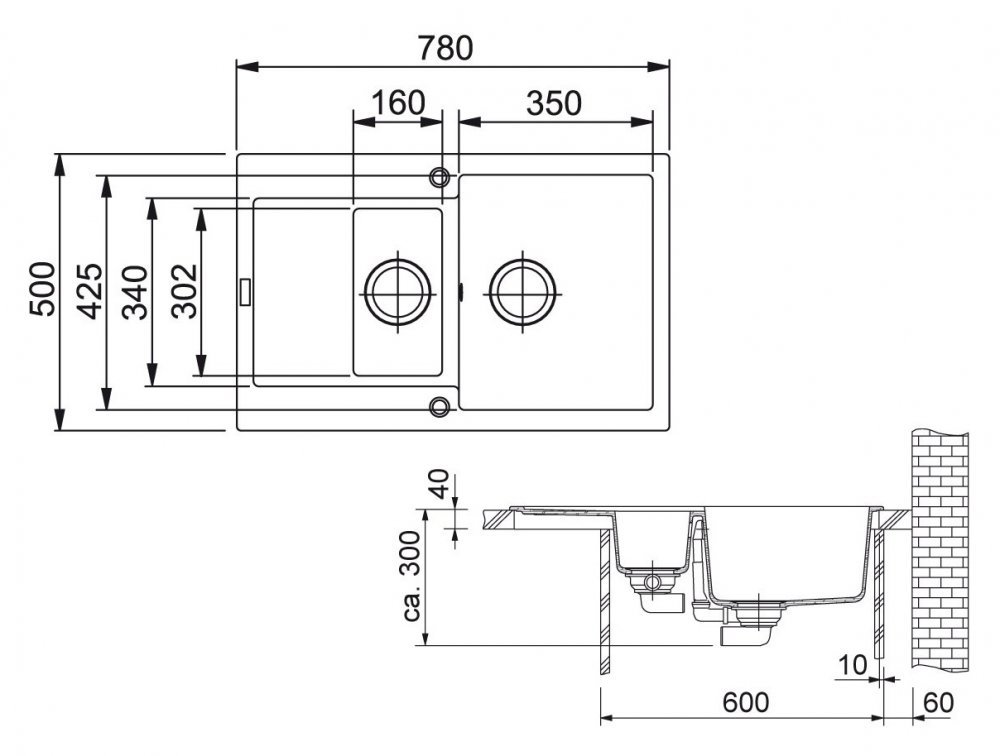 Кухонная мойка с монтажом на столешницу Franke BFG 651-78 оникс, в мебельную базу на 60 см