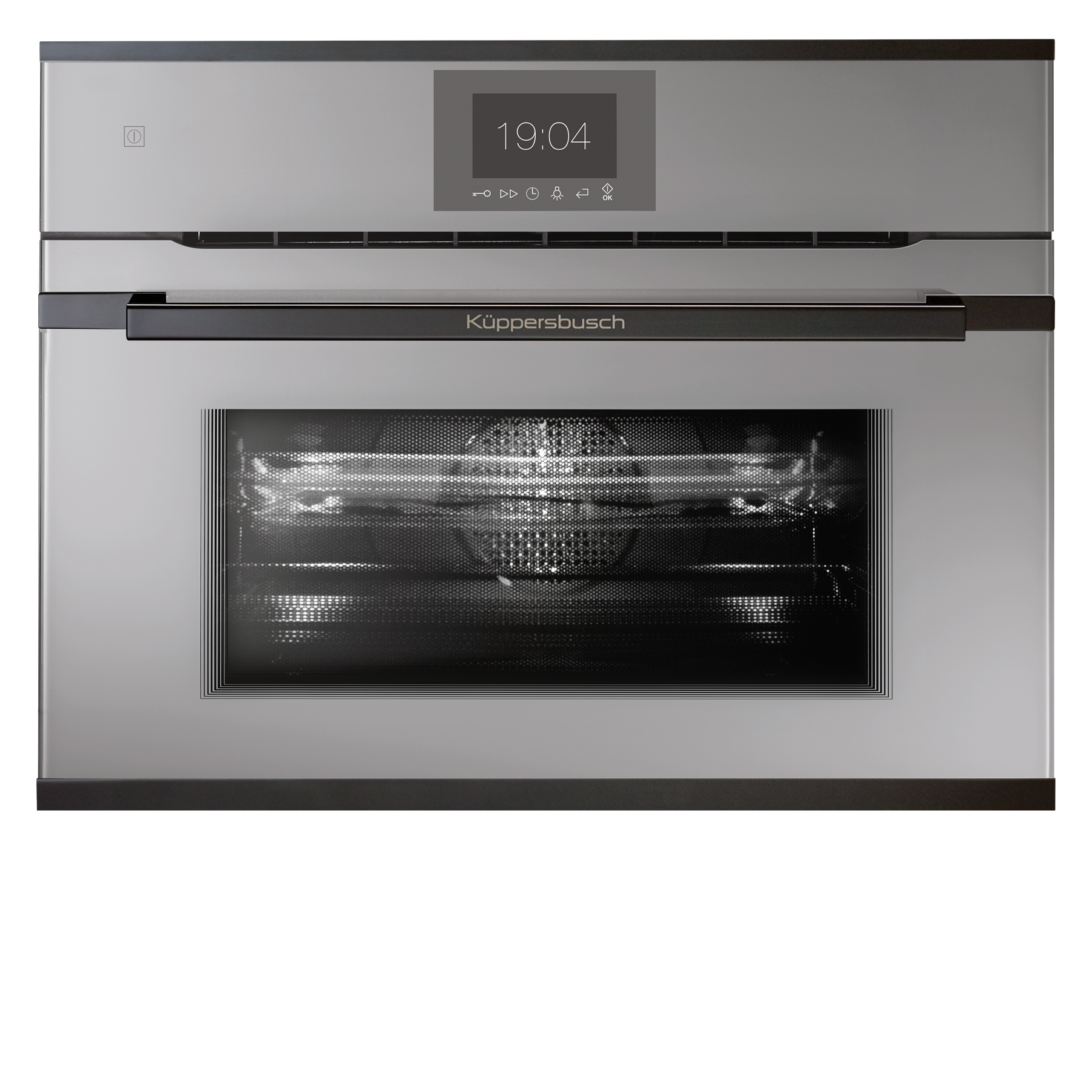Встраиваемый компактный духовой шкаф Kuppersbusch CBM 6550.0 G2 с свч, в отделке из серого стекла и профиля "черный хром"