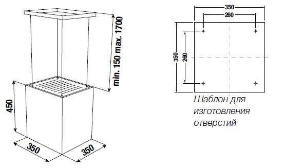 - рекомендуемая минимальная высота установки над варочной поверхностью - 50 см для газовых панелей, 45 см для электрических и индукционных панелей.