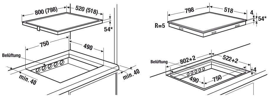 - 4 варочные зоны 210*190 mm / 2.100 (3.000 Вт*)